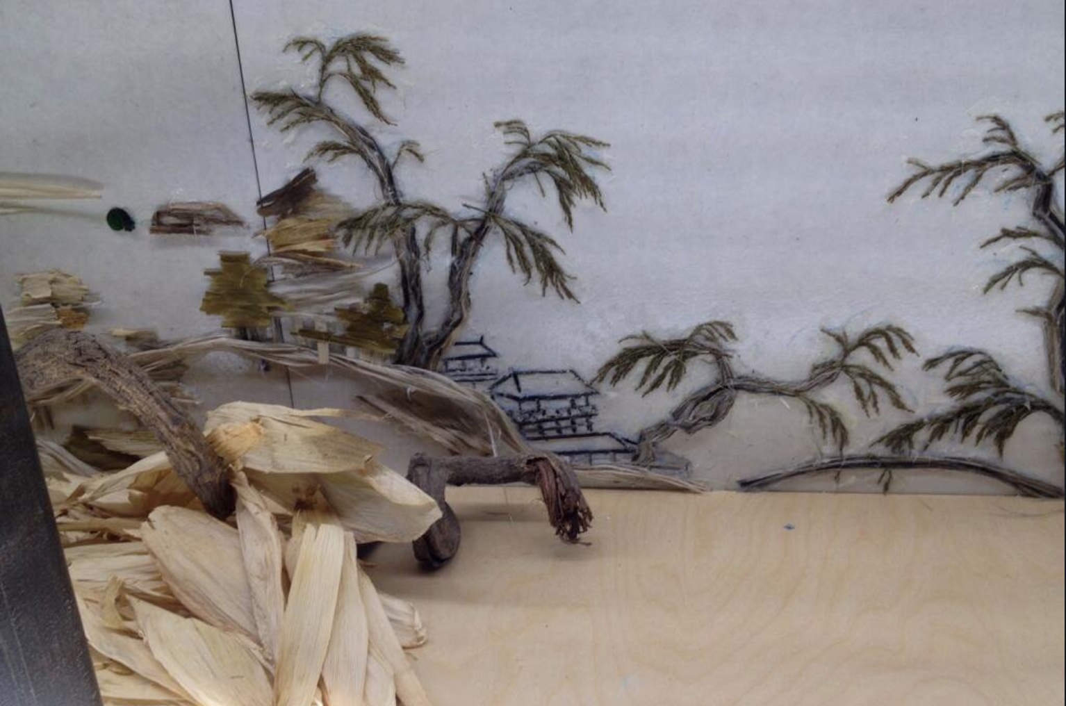 Background Story, the third work in this section, is an installation and as such only fully accessible when in situ like Ghosts and later works. It first appeared in 2004. What appears to be a Chinese landscape printed on rice paper secured in a long row of joined-up lightboxes extending across the space of the host gallery is actually formed of shadows cast by objects on the other side of the lightboxes, which are open to view. Over time, the installation has developed as a series, with each version being based on a different ancient Chinese landscape painting. Usually the painting belongs to the institution where the work is installed. Four of the versions can be found at these links to videos and a slide show: 2011, 2012, 2014, 2015. The 2018 version can be found in the UCCA video at the 6’16“ mark.