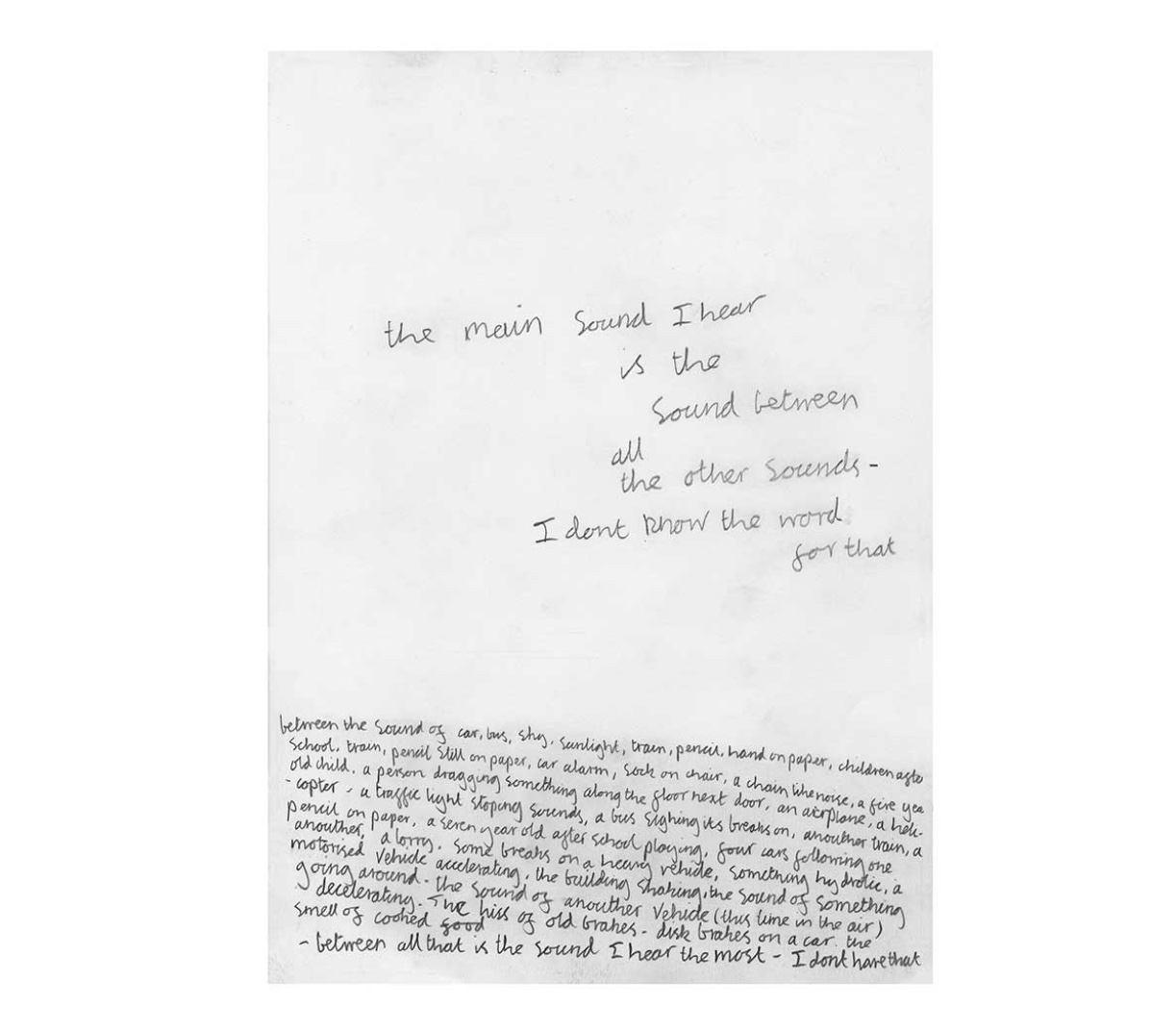 Darkness Visible installation (2017) Sam Winston Text piece on walls and floor Three months of transcribing sensations outside of sight. Starting with sounds and touch (wall) then moving into abstracted thoughts and emotion (floor)