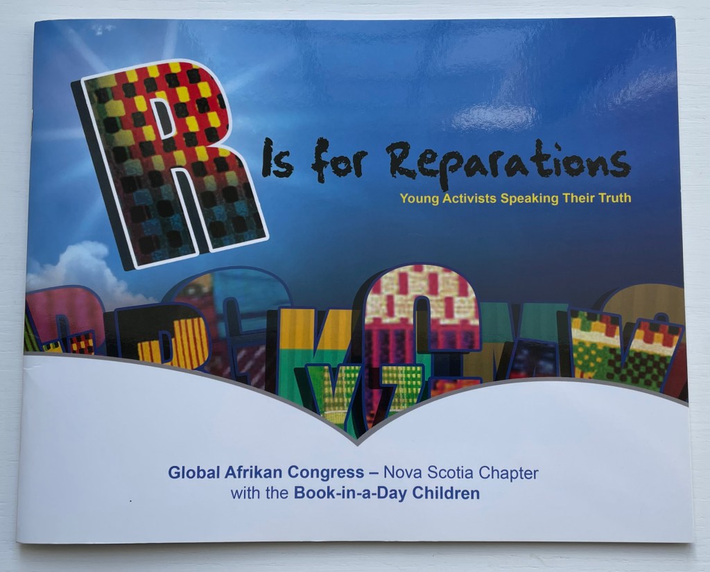 R is for Reparations (2019) Global Afrikan Congress (Nova Scotia Chapter) Denise Gillard, ed. Paperback saddlestitched with staples. H260 x W210 mm. 40 pages. Acquired from the Book Depository, 1 March 2023. Photos of the book: Books On Books Collection.