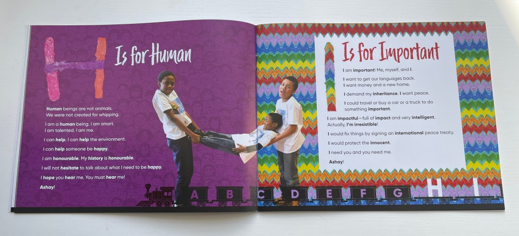 If all alphabets have a world view, can an alphabet be bent and arranged into a new world view? In 2018, the Nova Scotia Chapter of the Global Afrikan Congress facilitated a “book-in-a-day” event to help the children of Halifax create an alphabet book that answers that question. Bending and arranging the human body to make letters has a long tradition in book illustration. Drawing on that tradition, the participating children gave voice and body to create R is for Reparations, an alphabet book calling for a new world view on reparations for the damage and legacy of the Atlantic Slave Trade.