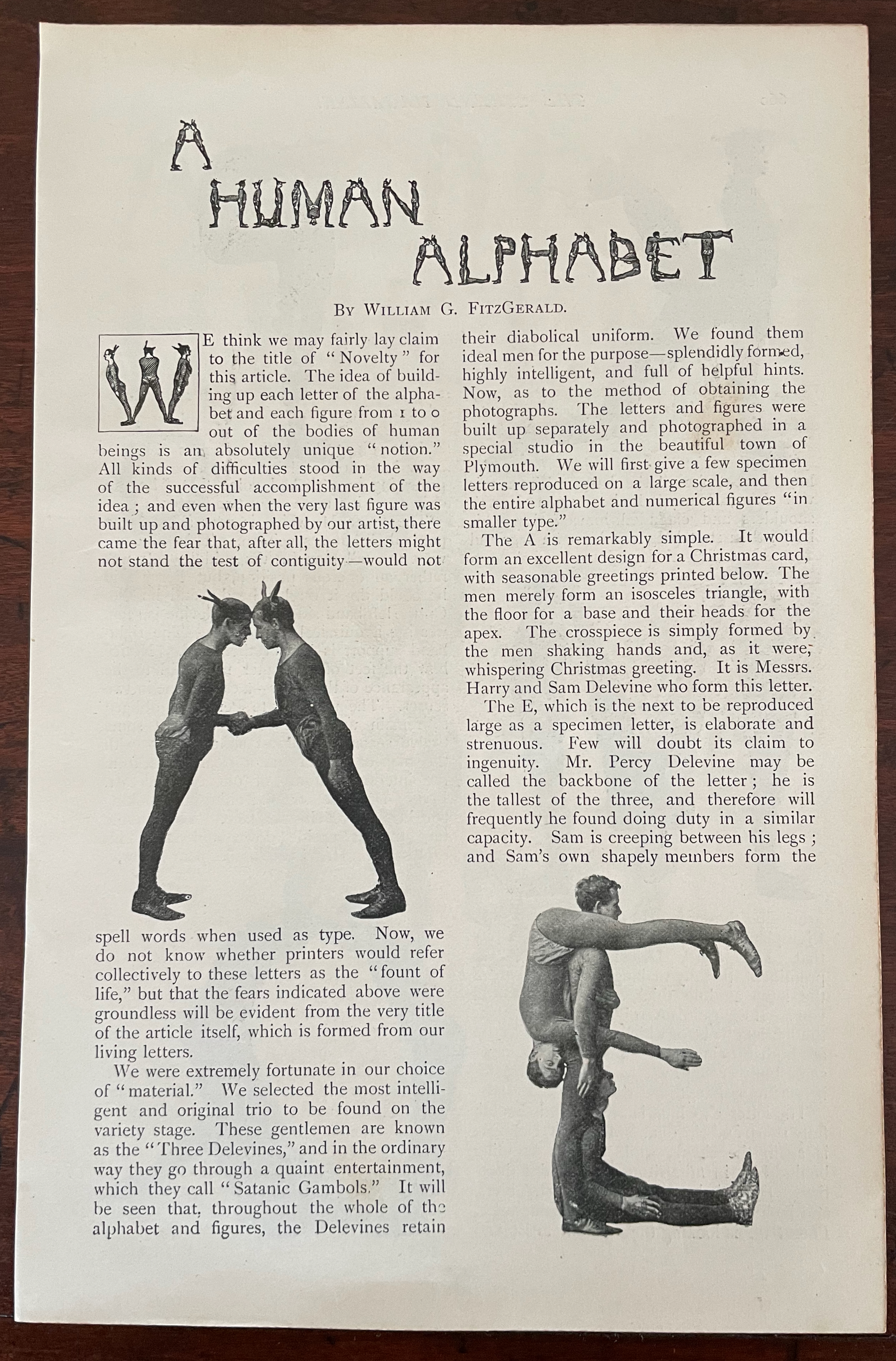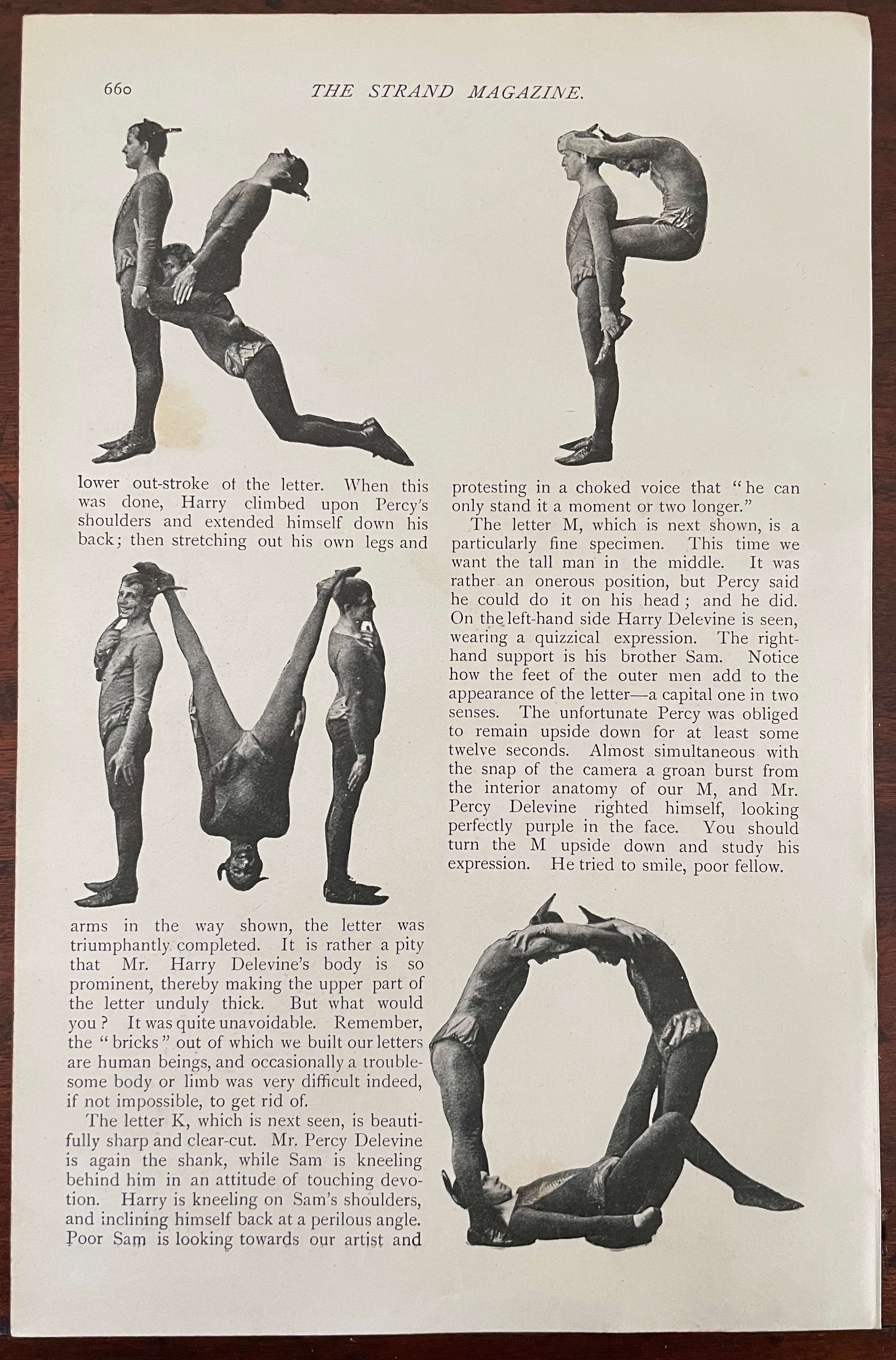 A Human Alphabet (1897) The Three Delevines Loose folios, William G. Shepherd’s article in The Strand Magazine, Vol. XIV, December, pages 660-64.H230 x W160 mm. Acquired from Cosmo Books, 26 August 2023. Photos: Books On Books Collection.