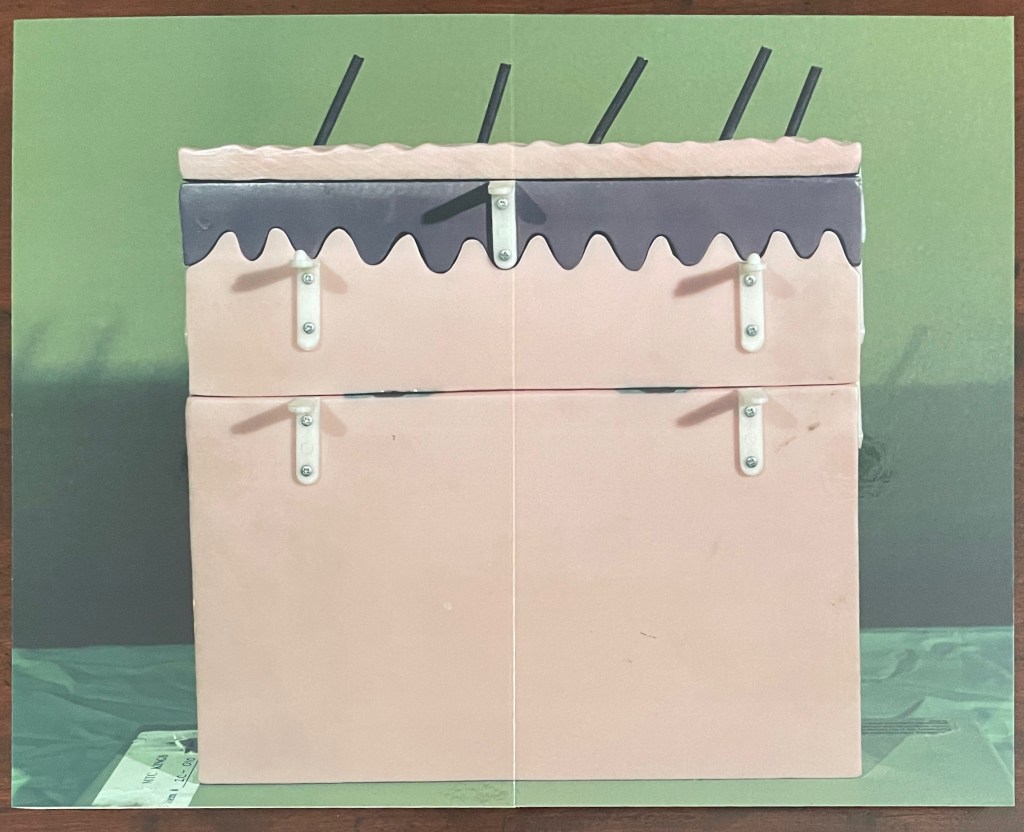 There’s something childlike, playful but serious conveyed in all this. Physically Making Memeries presents itself as an oversized children’s board book (or perhaps a board book for undersized adults). The use of the board book to make this cross-over can also be found in other artists’ books — Colleen (Ellis) Comerford’s ABCing and Phil Zimmermann’s Sonorensis, for example.