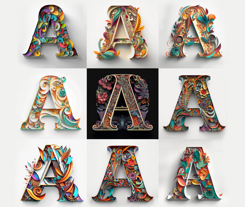 Chance is a well-known muse to many artists. Midjourney, the application, requires an extensive amount of “prompting” — detailed text describing the image it will create. As Berdnikov notes above, the same text can generate different results, which implies an element of randomization at work in the application. But how could a randomizing function yield a meaningful absence of image in response to prompting text? How could machine learning enable Midjourney on its own to compile this version of the alphabet without that particular and human creative intervention?