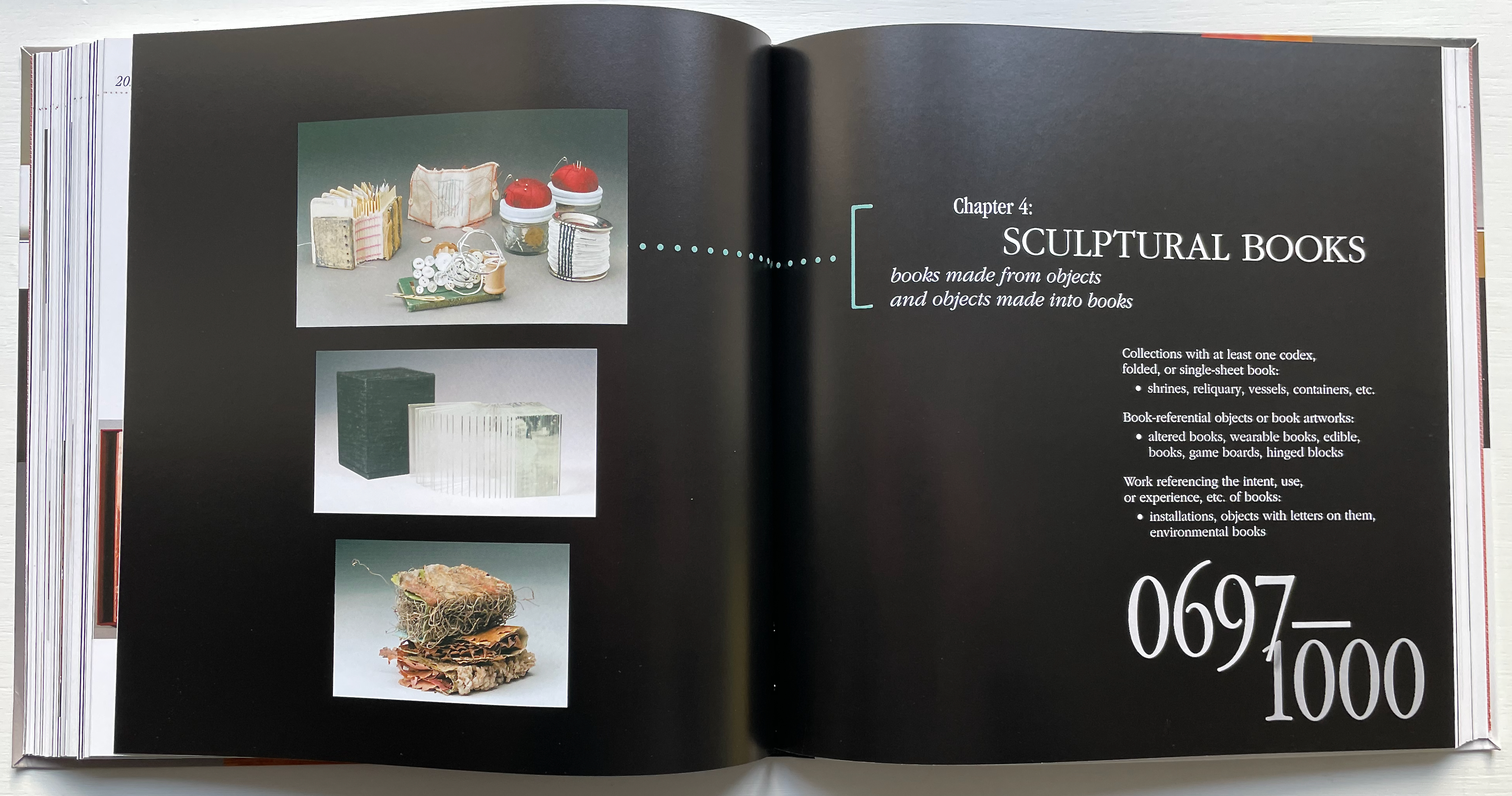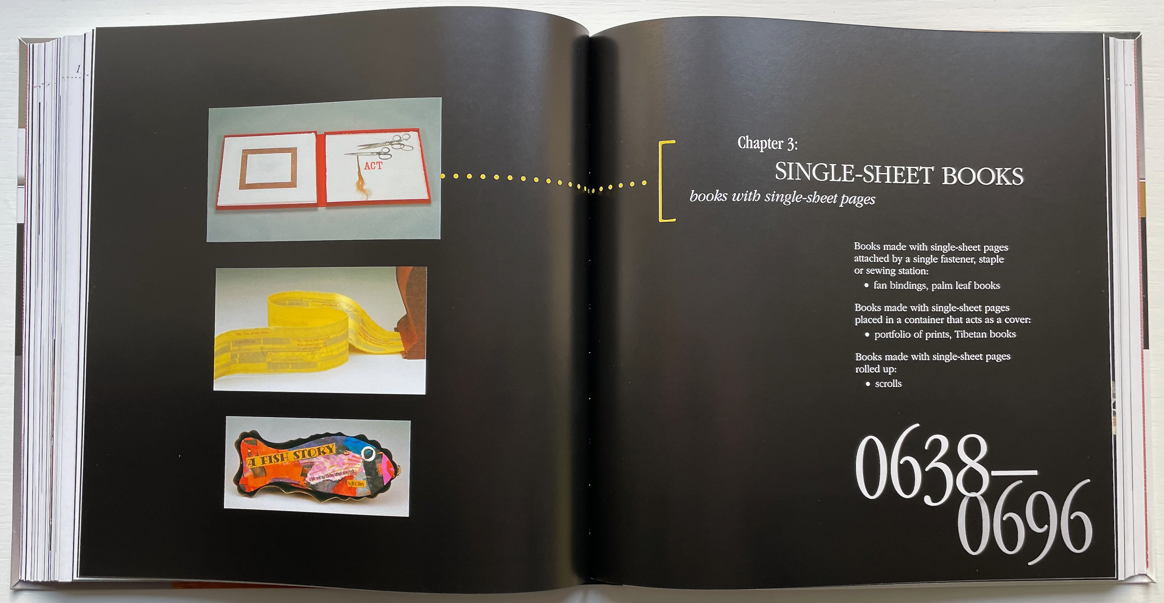 Drucker, Johanna. 2004. The Century of Artists’ Books [Second edition] ed. New York City: Granary Books. For investigation “of the book as a form through examination of its material, thematic, and formal properties “, see p. 93.