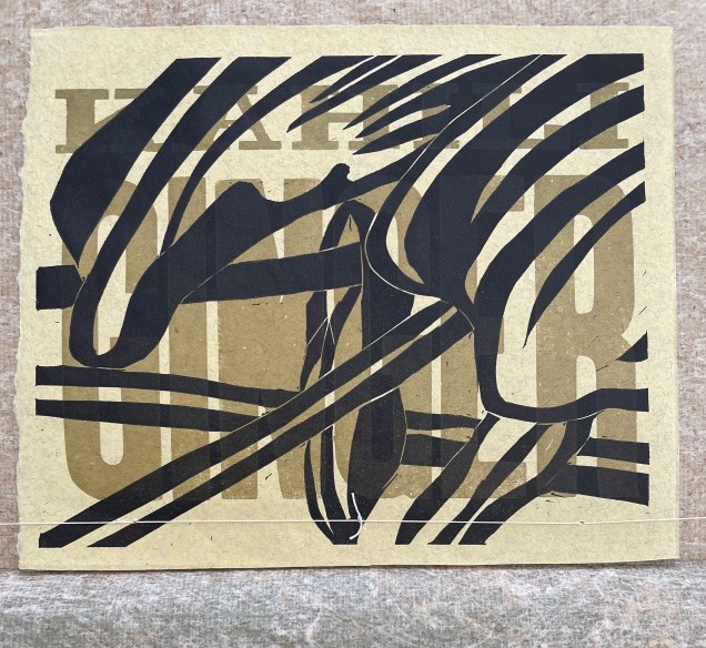 Part 4, labeled “Section L: Notes on Seasonal Fluctuations of Lightweight Discrepancies”, is the densest of the gatherings. Drawings, verse typeset in English and scribed in Portuguese, typographic arrangements, trimmed and segmented photographs, and linocut prints of a stone wall all find their way into Part 4.