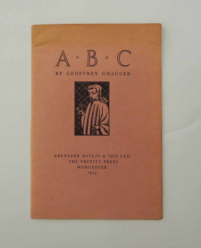 ABC by Geoffrey Chaucer (1934) [Eleanor] Joyce Francis Chapbook, softcover sewn. H250 x W170 mm. 16 pages. Edition of 500? Acquired from Antiquariaat Fokas Holthuis, 30 April 2021. Photos: Emilia Osztafi.*