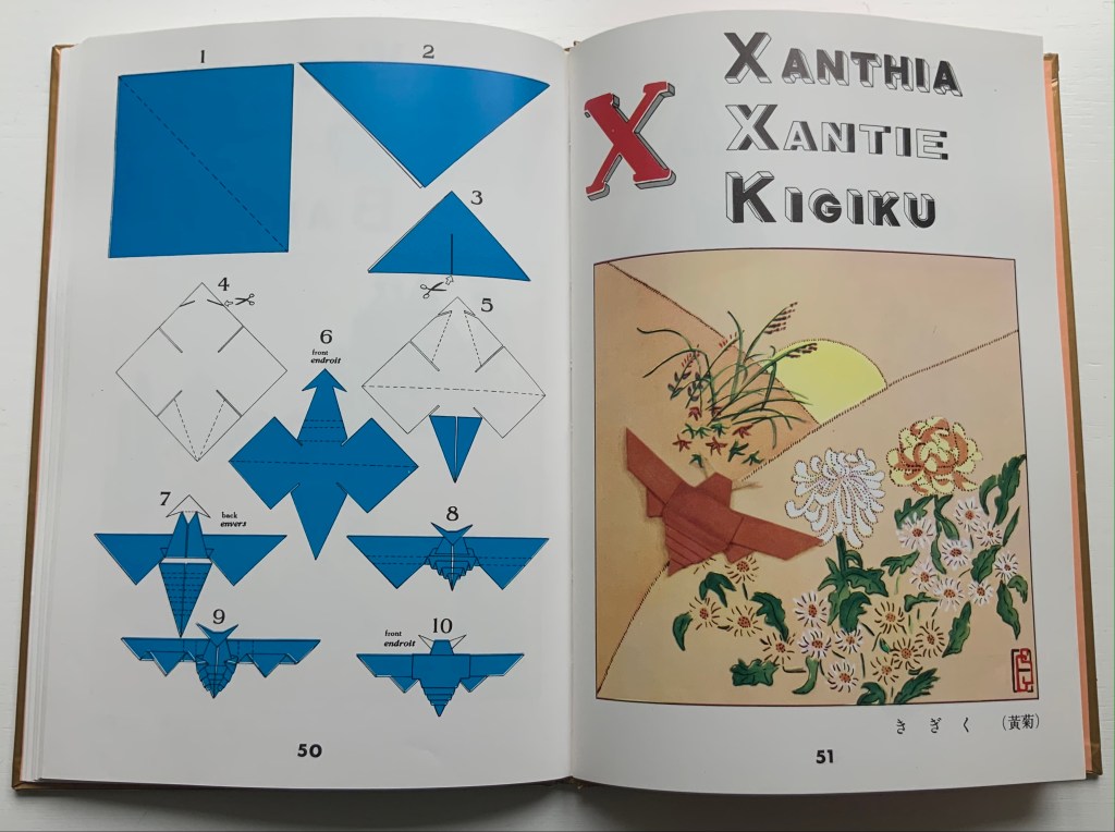 The ABC’s of Origami(1964) Claude Sarasas Paper on board, casebound with illustrated endpapers. H264 x W188 mm, 56 pages. Acquired from Thrift Books, 7 September 2021. Photos: Books On Books Collection.