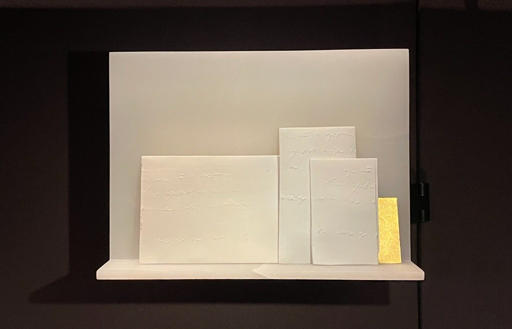 My response brings to the palimpsest another layering artist who celebrates Celan in works of book art: Anselm Kiefer. The juxtaposition provokes an intake of breath as it brings to mind Shulamith (1990) in homage to Celan’s “Todesfugue” (“Death Fugue”) or The Secret Life of Plants (2008) shown with a sound installation of Celan’s poetry and also sponsored by Ivorypress. So different from the whiteness of breath and its materiality of porcelain, wood, gold and paper, Shulamith is 64 pages made of lead, hair and ashes (1010 x 630 x 110 mm), and The Secret Life of Plants is 18 pages made of oil on lead over cardboard (1900 x 1400 x 200 mm). Both are dark and foreboding works. The artists themselves, too, differ in their roots. As told in The Hare with Amber Eyes (2010), de Waal’s family, the Viennese Ephrussis, were persecuted by the Nazis. Kiefer’s father was a soldier in the Wehrmacht, which we know from Kiefer’s infamous early works incorporating photos of him in his father’s uniform and giving the Nazi salute. Where de Waal evokes breath and whiteness, Kiefer evokes death and leadenness. Yet both fuse materiality and visual representation with text (whether explicit, implicit or hidden) to stand with Celan’s agony and creative spirit and achieve an originality, an independence that is nevertheless dependent on history.