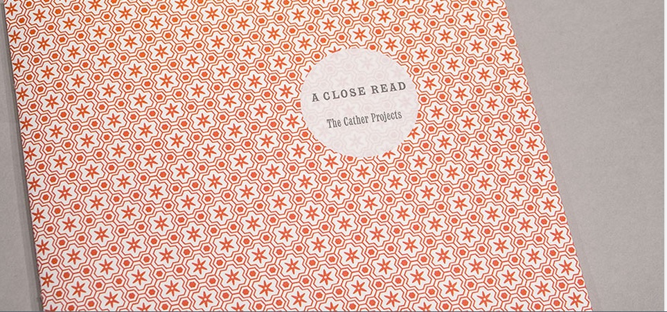 A Close Read: The Cather Projects (2012) Barbara Tetenbaum and Jennifer Viviano Catalogue with three inserts sewn to folded card, published by Oregon Arts Commission. Photos: Books On Books Collection, displayed with permission of the artist.