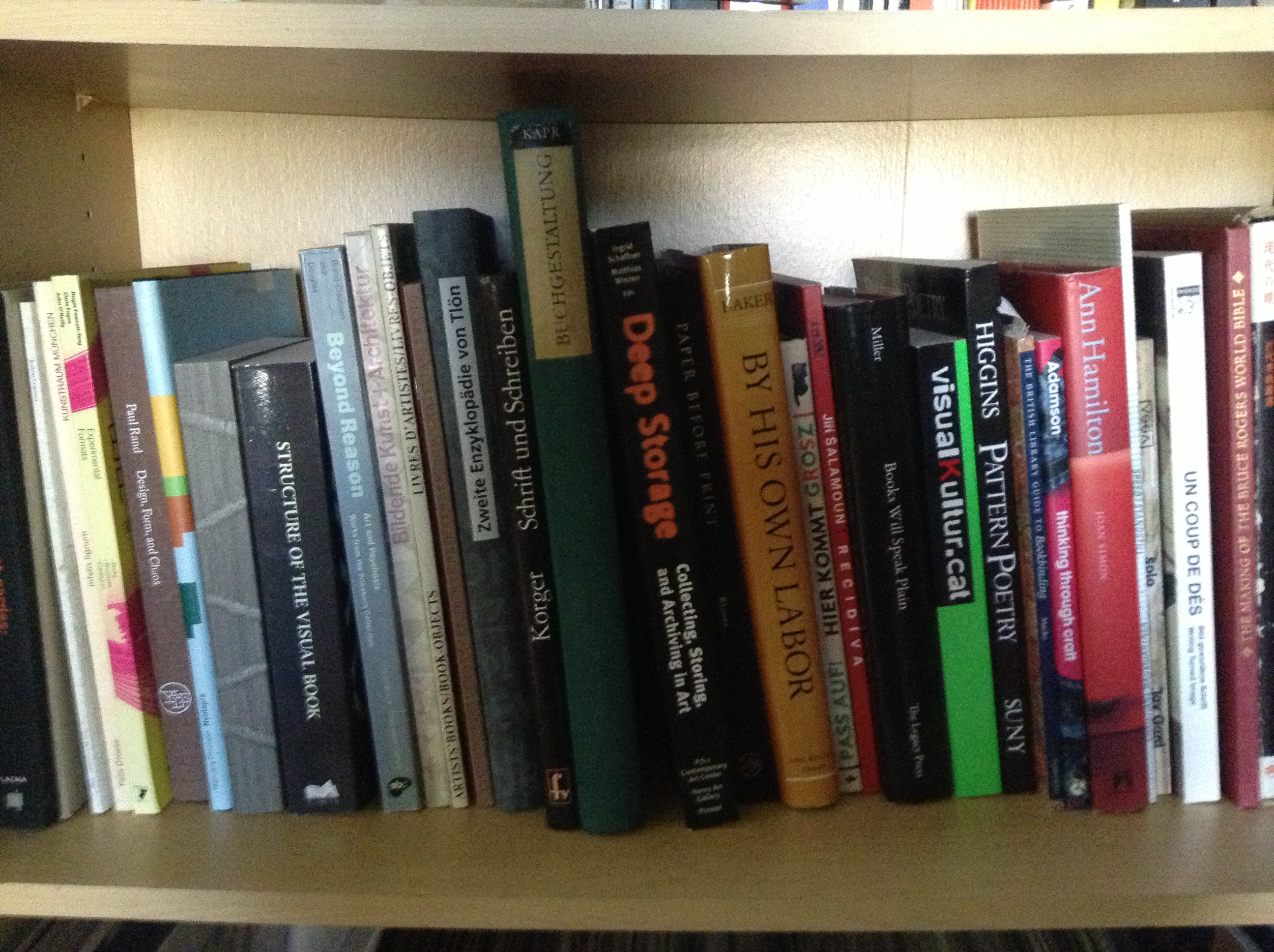 And to say something about the adjacent books on the shelf: I was surprised how many of them had German content! These books represent people I have met, places I’ve been. For instance, the Hildegard Korger book was a gift from her after I spent a semester in Leipzig. She had been so very suspicious of me as an American, so shortly after the Wall had come down, very odd to speak with, but in the end she saw that I was trying to do something positive for the school and the students. She gave me this book and told me we could say “Du”. It was an important moment for me. And Peter and Ines’s encyclopedia is one of my favorite projects of the last decade or so. I admire them so much and can’t begin to imagine what it takes to make the work they make. I know them well, but they are super heroes for me. That book on paper is smart and continues to prove that the development of book culture is primarily a political process.