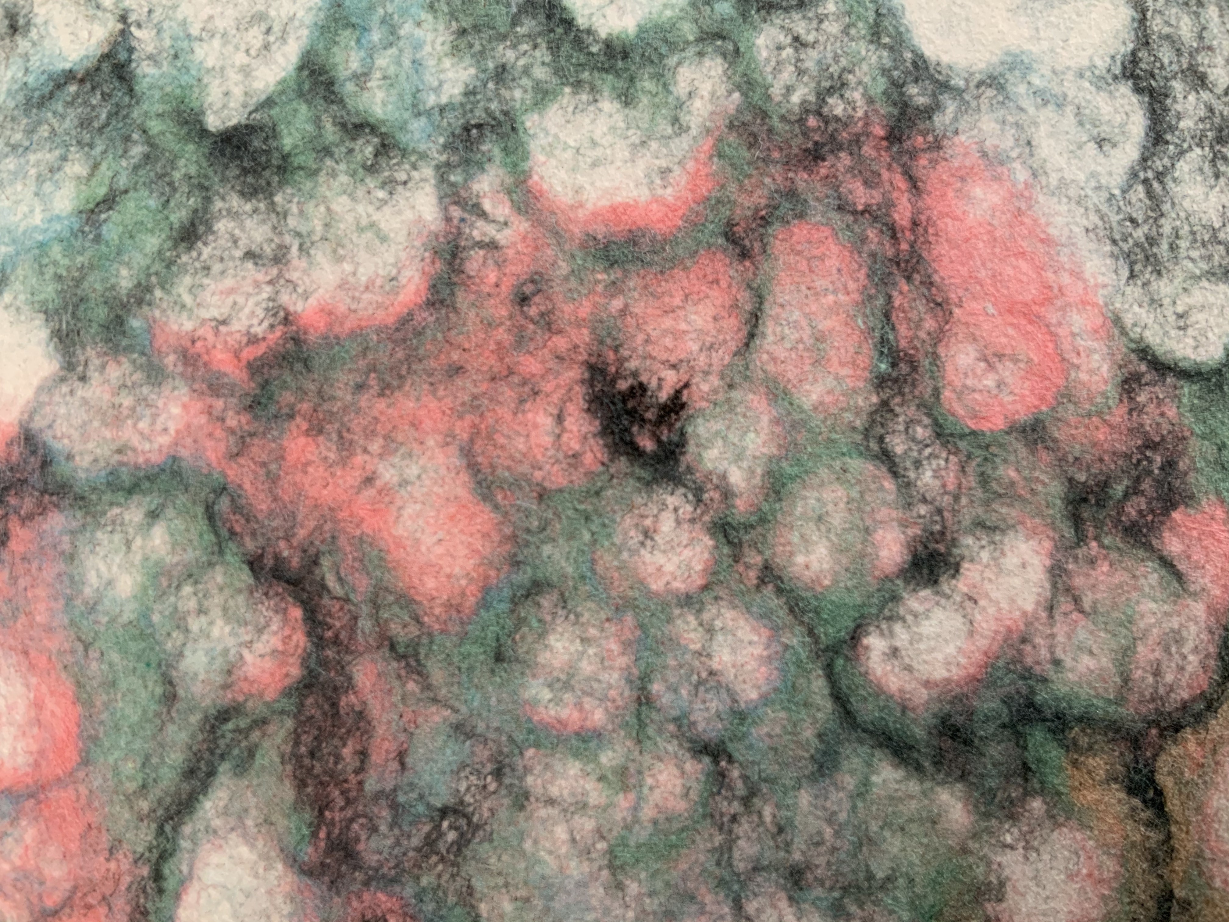 A love poem that takes off from the act of trying to remember forging a name in a hotel register for an assignation that forged something true and lasting, ‘Smith’ is about making one’s mark as artist and responding, intimately, one human to another. To transfer her marks made in response to the poem, Tetenbaum used