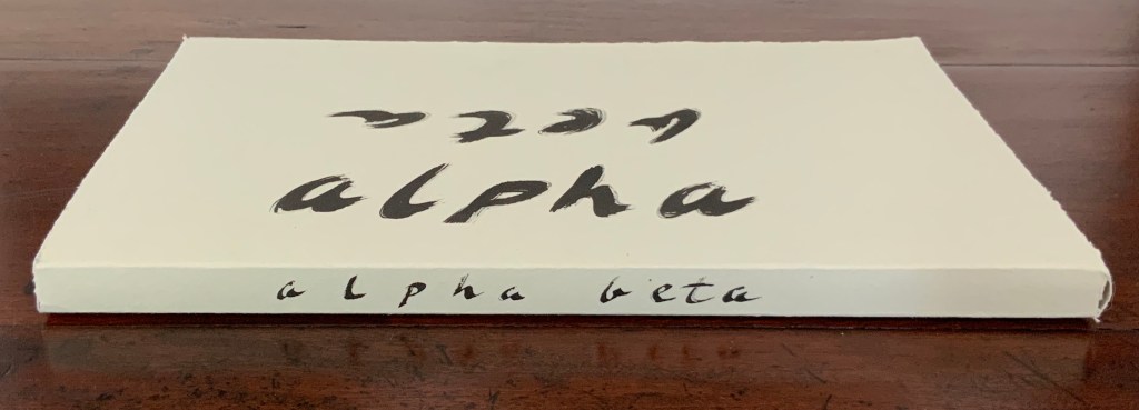 The White Alphabet (1984) Ron King Box made of two slipcases, one inside the other. Gilt lettering on spine of inner slipcase. Back-to-back leporellos with wooden front and back covers. Outer slipcase: H305 x W140 x D70 mm. Leoprello: H290 x W135 mm. Edition of 150, of which this is #99. Acquired from Veatch’s, 11 June 2021. Photos: Books On Books Collection.