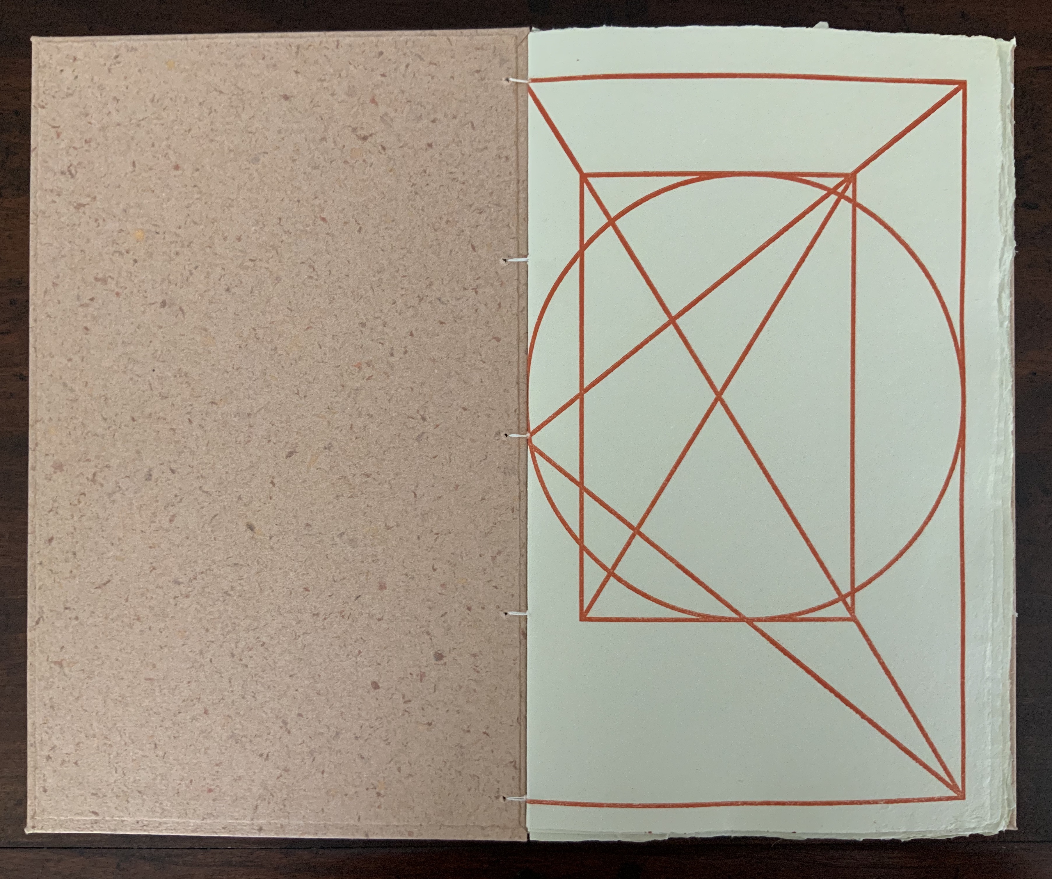 Bryant’s insightful integration of Plato’s and Le Corbusier’s texts and ideas and her setting them in the physicality of the blond wood, linen cover, embossed type and sewn papers could easily be a response to Pallasmaa’s comment in The Eyes of the Skin: “The current overemphasis on the intellectual and conceptual dimensions of architecture contributes to the disappearance of its physical, sensual and embodied essence.” (p. 35)