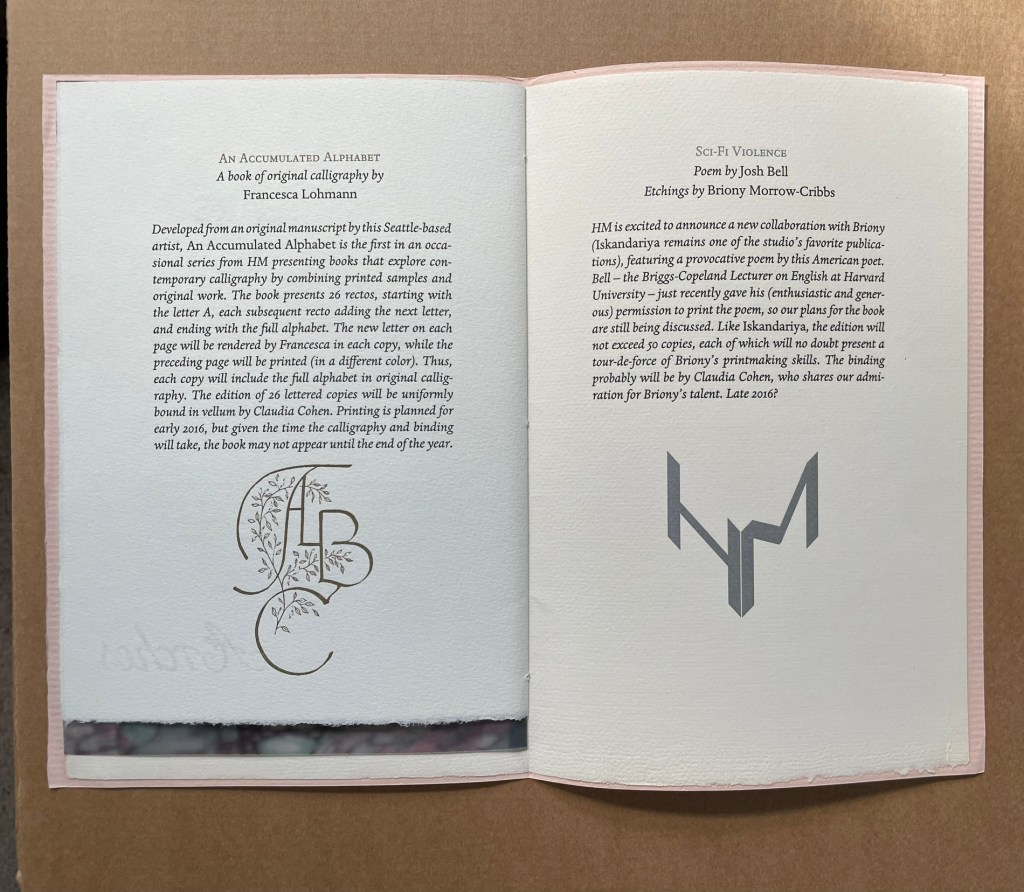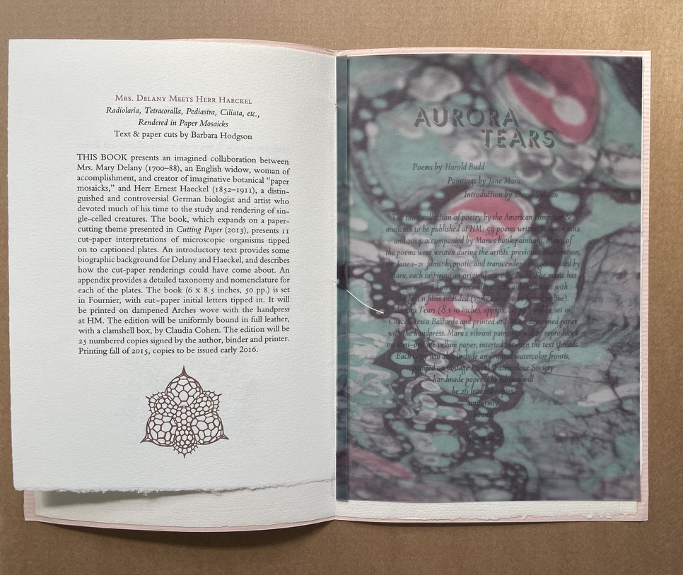 Update: Still more can be found in this interview with Helen Hiebert, accessed 15 November 2020. And more in this artist’s talk at New York’s Center for Book Arts in 2023.
