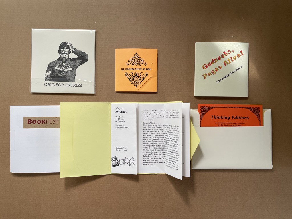 Flights of Fancy (1996) Envelope with tab, trifold, center-cut single sheet forming booklet H145 x W116 mm. Acquired from Ed Hutchins, 20 May 2014.