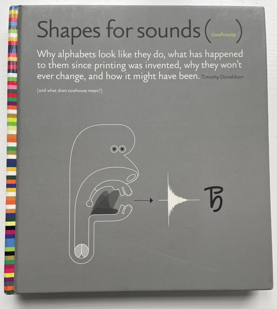 Calligrapher, typographer, performer, letterworker (as he calls himself) and artist, Donaldson could rightly call Shapes for Sounds (cowhouse) an artist’s book if he wanted. Among the alphabet reference works in the Books On Books Collection (and those consulted elsewhere), it has these claims to singularity in addition to its artistry.