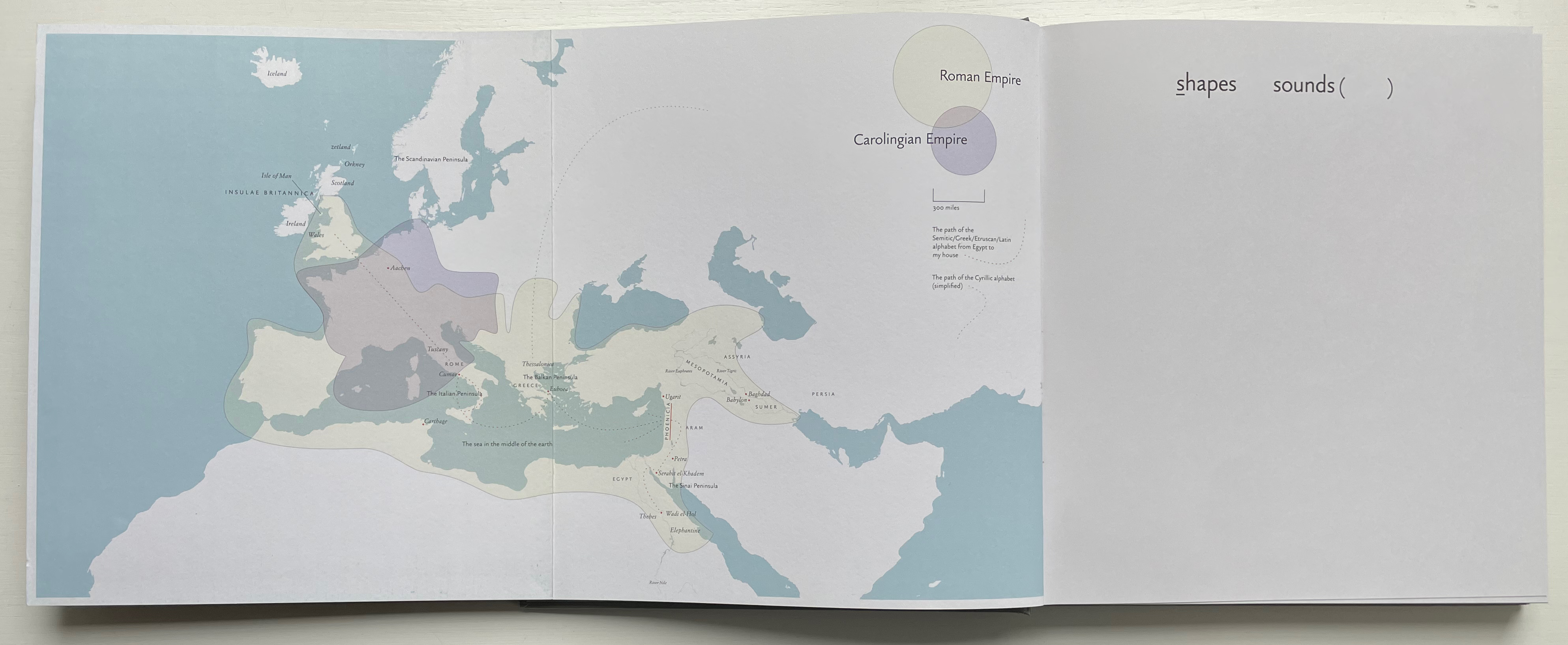 Timothy Donaldson’s Shapes for Sounds (cowhouse) gives the word infographics an amusing twist. Here the alphabet, which began in pictographs, winds up in an alpha-pictographic form of representation: twenty-six double-page spreads and thirty-seven appendices mapping almost all of the alphabet’s vast terrain. A tour de force of design (the main text is even set in a typeface of the author’s making, and the double-sided foldouts integrated with the endpapers are sheer showmanship), the book can almost be forgiven for missing out the ampersand.