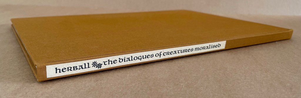 Staking his claim over Andrew Morrison as first past the post, Clifford starts his A-Z with the last symbol of the alphabet (“Ampersand”) and closes with the same Z term (“zinco”). There are other overlaps in terms, but the two efforts differ so rewardingly — Clifford’s woven binding, typeset definitions, miniature trim size and handmade paper versus Morrison’s children’s board book hinged binding, demonstrated definitions, larger trim and Somerset paper — that one cannot be chosen over the other.
