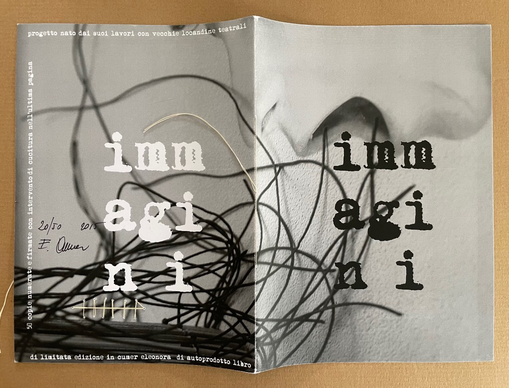 In the colophons of several earlier works, Cumer has drawn attention to this practice in libro catalogo of recycling her works. She labels them as part of projects “born of work with old books”, “born from her artist’s books”, and “born of her work with old theater posters”. Three of them are explored below, and three others can be found in a previous entry on her work.