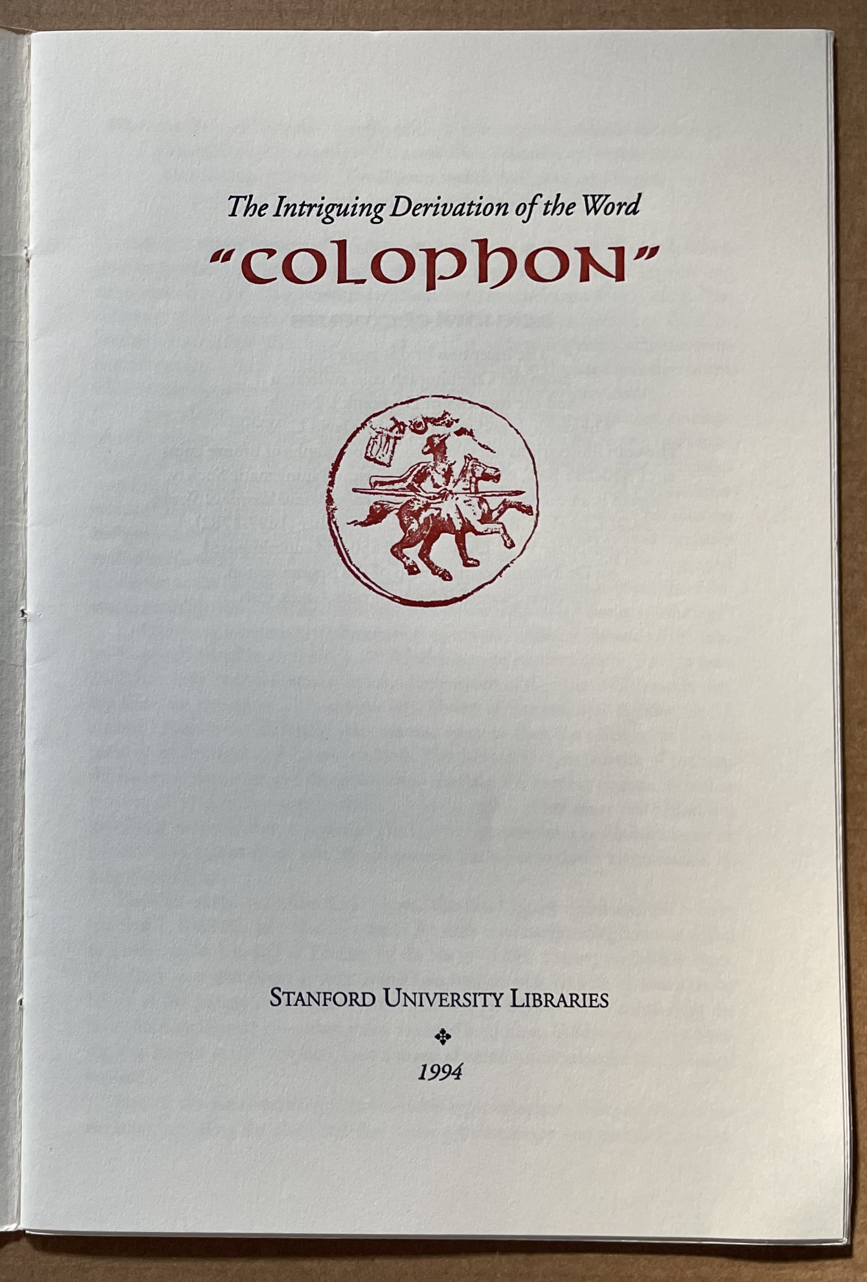 David C. Weber, “Colophon: An Essay on its Derivation,” Book Collector 46 (Autumn 1997).