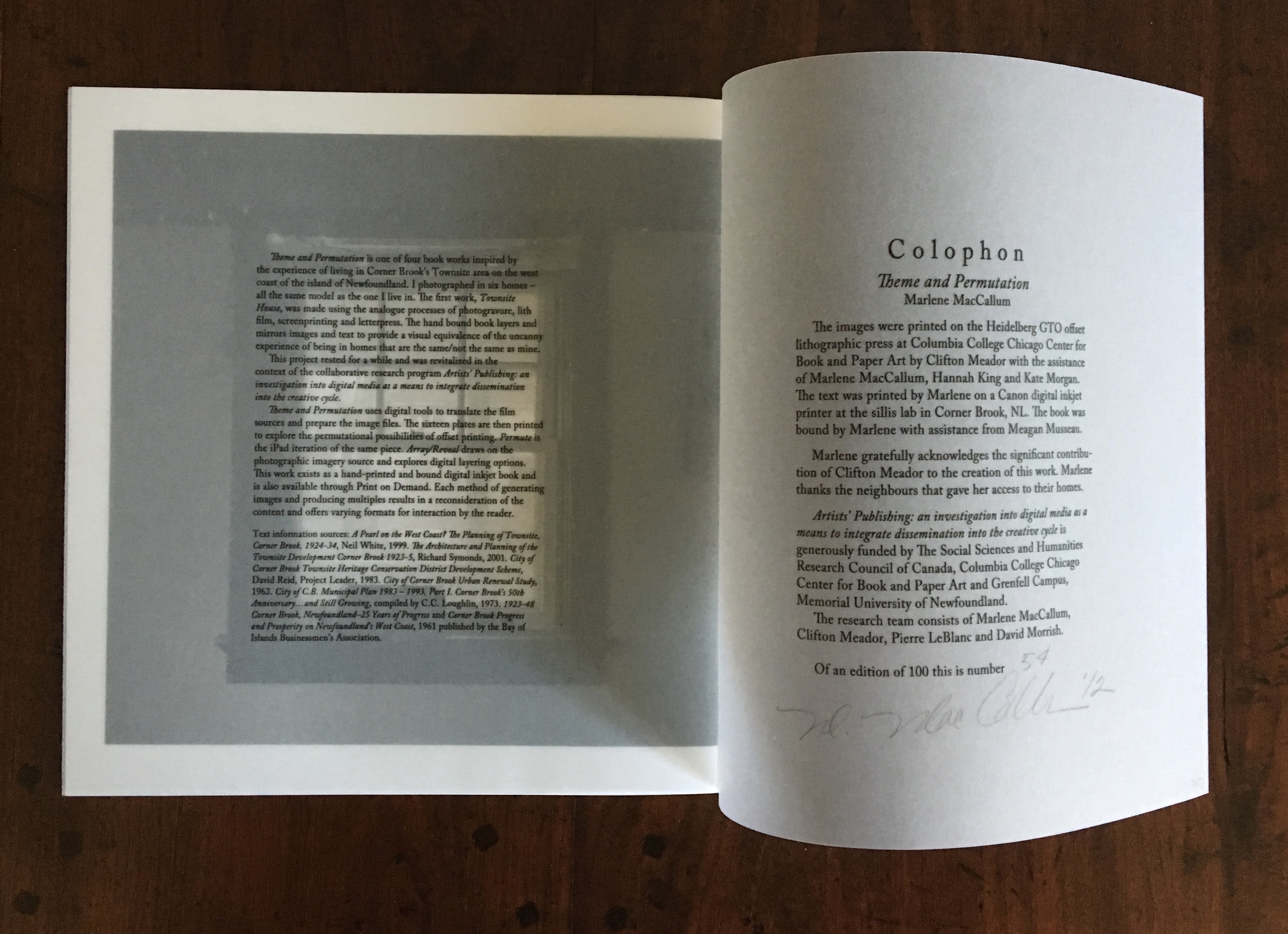Perhaps the story of the little “i” left over – the colophon – will prod the future historians of book art to examine bookworks and their artists’ websites for those finishing touches and stir artists to bestow that last finishing touch for the sake of the work’s soul if not their own.