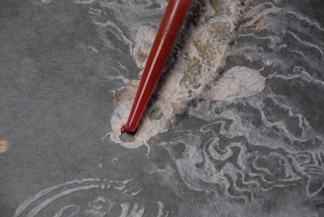Working on pulp painting from the front to the back Photo credit: courtesy of Pat Gentenaar-Torley