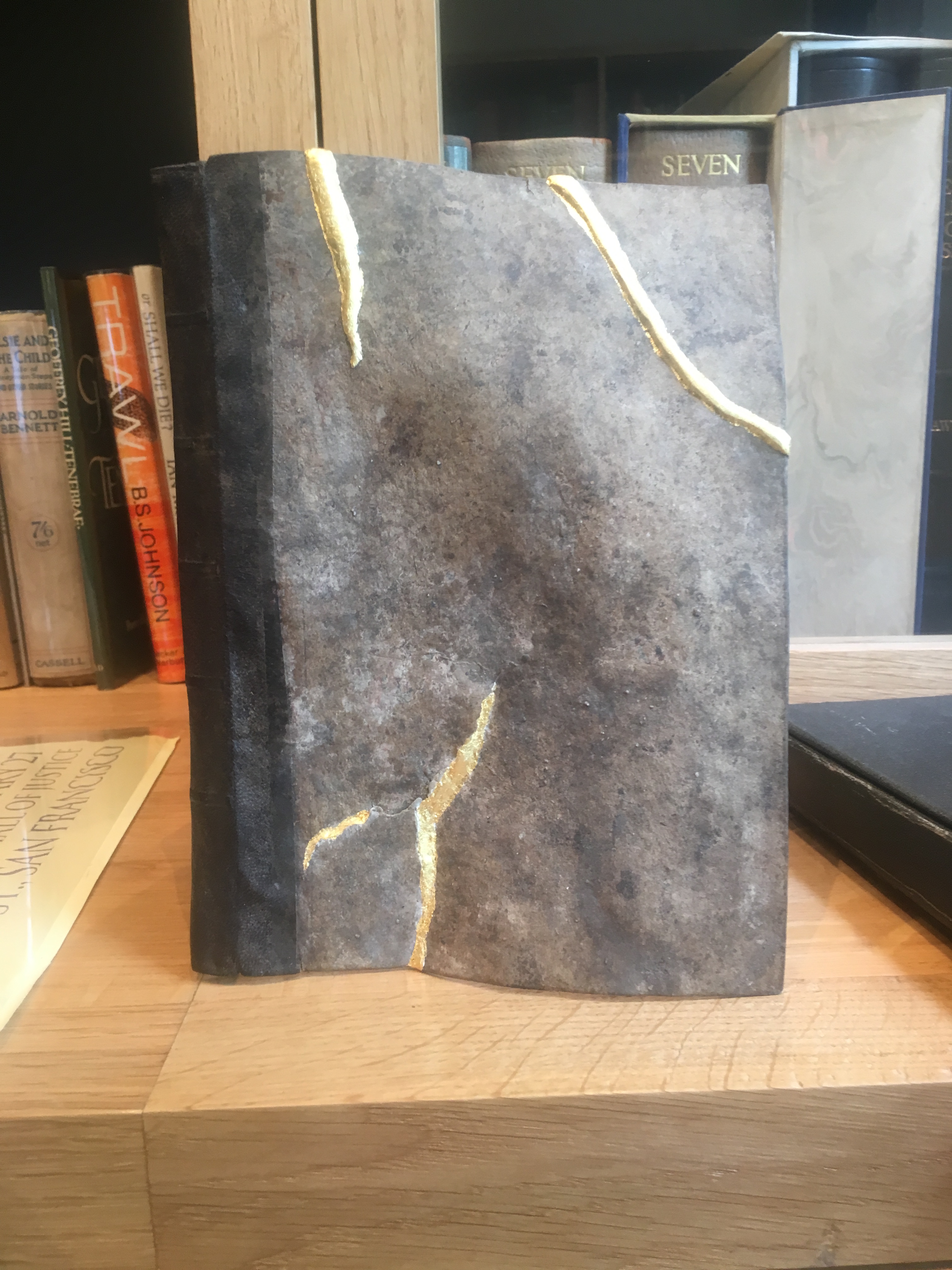 Kintsugi (2013) Mark Cockram Unique. Buried book with 23.5 ct gold leaf inclusions. 15cm x 20cm. Courtesy of Maggs Brothers Ltd