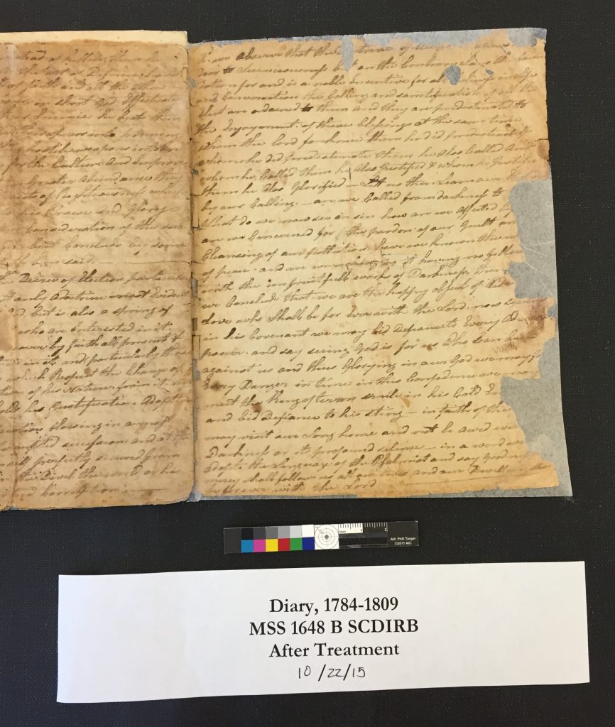 The mending with Japanese paper reminds me of passages in A Degree of Mastery, where the author describes mending rare books with kozo paper under the eagle eye of the late Bill Anthony. The mending with paper pulp though recalls the painstaking art of Pat Gentenaar-Torley.