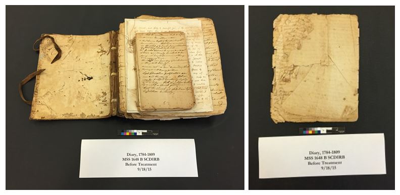 Those dry tunneled pages tear easily with turning, compounding the loss with further damage. To forestall such damage, the areas of loss could be filled page by page with Japanese paper (kozo or gampi) or with paper pulp. The Smithsonian’s book conservation lab illustrates the former method here: