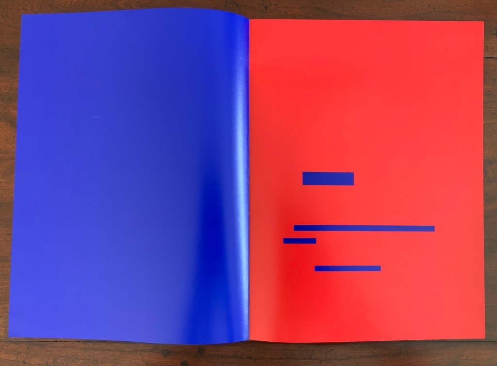 In Après Un Coup de Dés (2015), the only printed marks are the cover’s traditional black and red borders and the printer’s registration and gathering marks on the sheets. Wherever else Mallarmé’s text would have been printed has been excised. In reply to a question about the process involved, Lorand explains that he had asked the designer Filiep Tacq to create a layout that would cover in black exactly the blocks of text as it appears in the current Gallimard book edition of Mallarmé’s poem, including the front and back covers (correspondence with the artist, 1 November 2021). Lorand took a scalpel to the offset printed sheets, removed the blackened blocks, folded the sheets by hand into the four gatherings, assembled them in the correct order and laid them untrimmed and loose inside the cover. Each of fifty copies was placed inside its own handmade glassine envelope along with a flyer including introductory text by Jacques Sojcher (emeritus professor, University of Brussels) and the colophon for the work. It is a book that is not-yet a book.