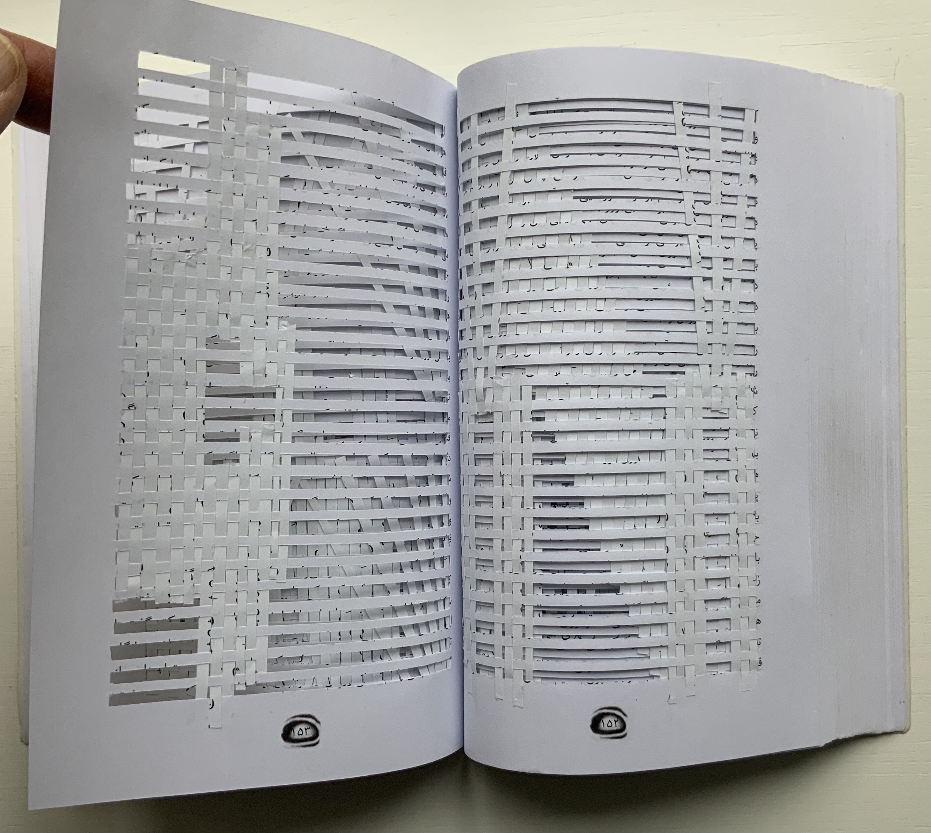 Some may be the conversion of old books into just-legible new ones as in A Humument redacted with ink, paint, excision, and collage by Tom Phillips, Tree of Codes mechanically excised by Jonathan Safran Foer, or The Eaten Heart scalpeled into existence by Carolyn Thompson. They give us a new work to read page by page extracted page by page from the earlier work, which remains more or less (mainly less) present in our hands.
