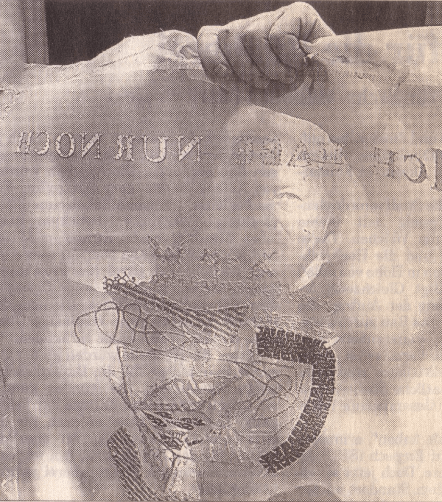 Holle, Peter. 30 August 2001. “Sie schöpft aus Brennnesseln Papier und druckt daraus ein Buch”. Frankfurter Rundschau. Photo: Oliver Weiner.