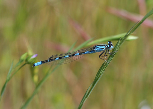 Tule Bluet damselfly perched on flax leaf. Photo: John Riutta, The Well-Read Naturalist (2009). Displayed with permission.