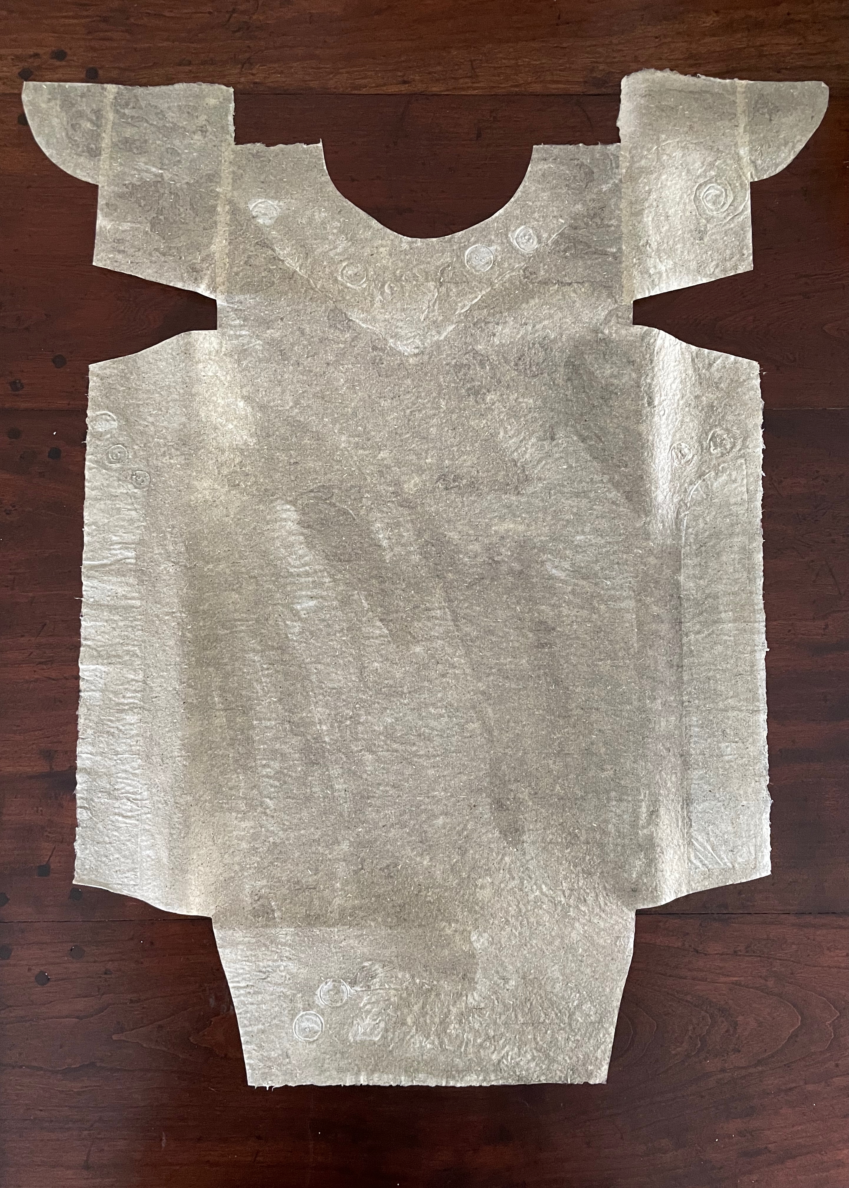 Sample 19.5 Composed of Stenotaphrum secundatum. Israel. With this sample, the pulp was washed for a further two hours after boiling and then strained through a screen under high pressure, which may account for its greater translucence. Sample 19.5’s wrinkles are more shallow than 1.1’s and resembles wax paper. Both samples have a pungent dry grass smell.