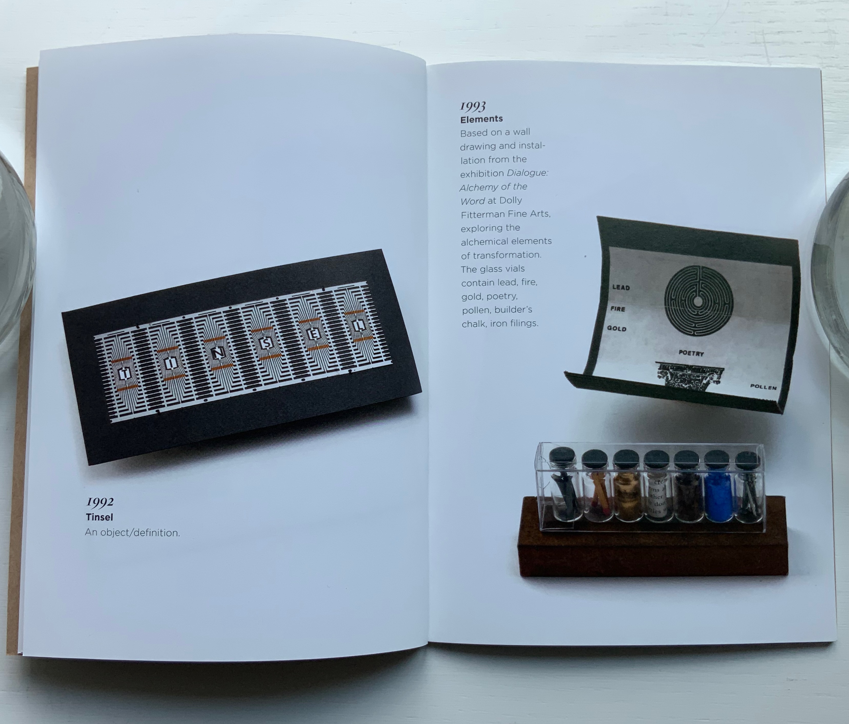 But a viewer standing in the “brutalist” construct of the Regenstein Library and holding this catalogue of The Book Made Art might have asked, “What makes these objects I cannot touch — or, in some cases even if I could, cannot read — art?” There is the catalogue’s third chime. From the start, book art has faced a constant definitional or identity crisis and even the challenge “but is it art?” The catalogue’s title echoes Lucy Lippard’s Duchampian proposition: “It’s an artist book if an artist made it, or if an artist says it is”. The catalogue’s design says, “This is the gallery, these are the objects on display in it, they are art”.