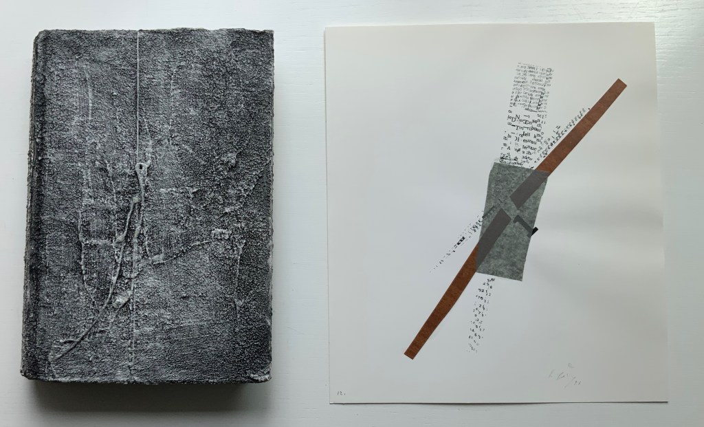 The sculpture echoes Bart’s Bound History (1992), whose photo appears in the dialogue and is answered by the photo of Löhr’s Book Object (1981).