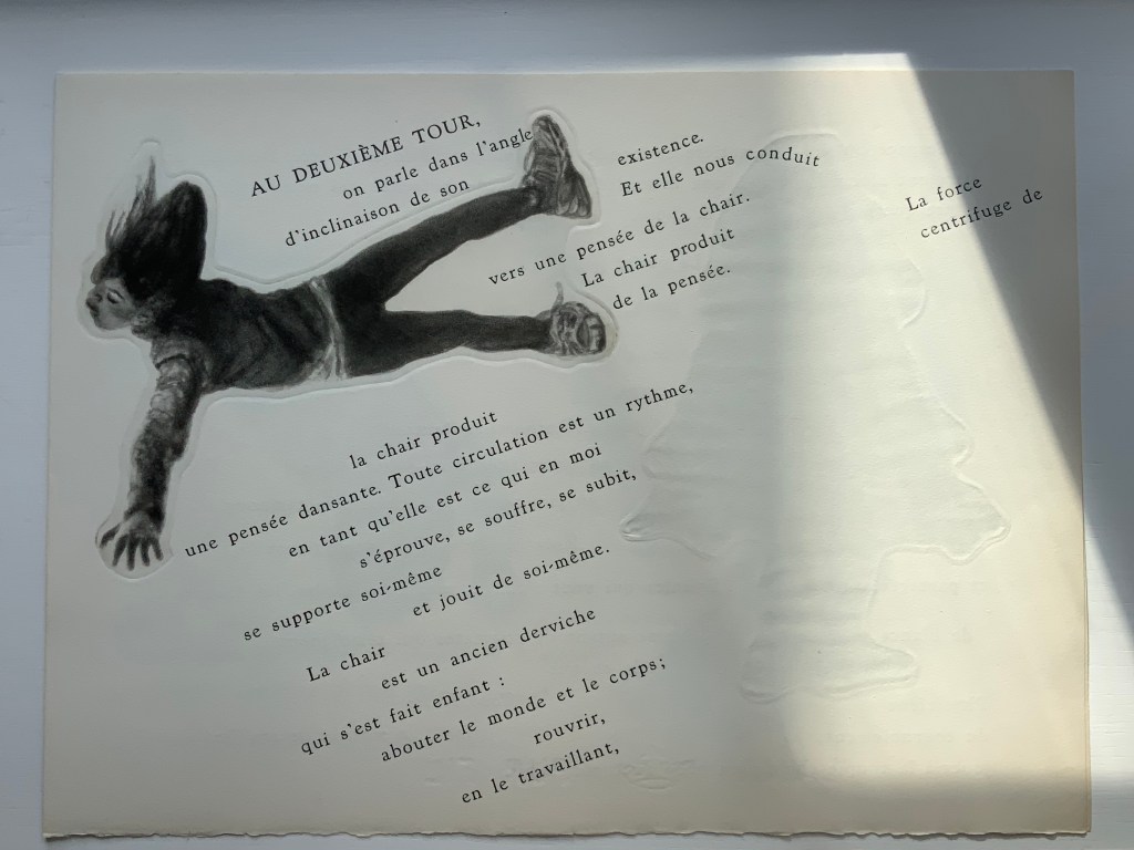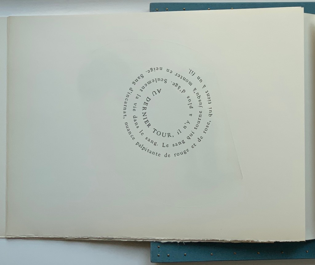Of those antecedents Blake and Mallarmé (and more Mallarmé than Blake) are the most useful touchstones for a collector. Blake’s innovation with etching that enabled him to unify script and image on the page and his mythic stance as a one-man band present a high bar to subsequent book artists. But for the collector, he stands as a reminder to consider both works of rude as well as fine craft, to inquire into technique and painstaking effort, and to look for unity (or intentional dis-unity) of word, image and form when contemplating an acquisition.