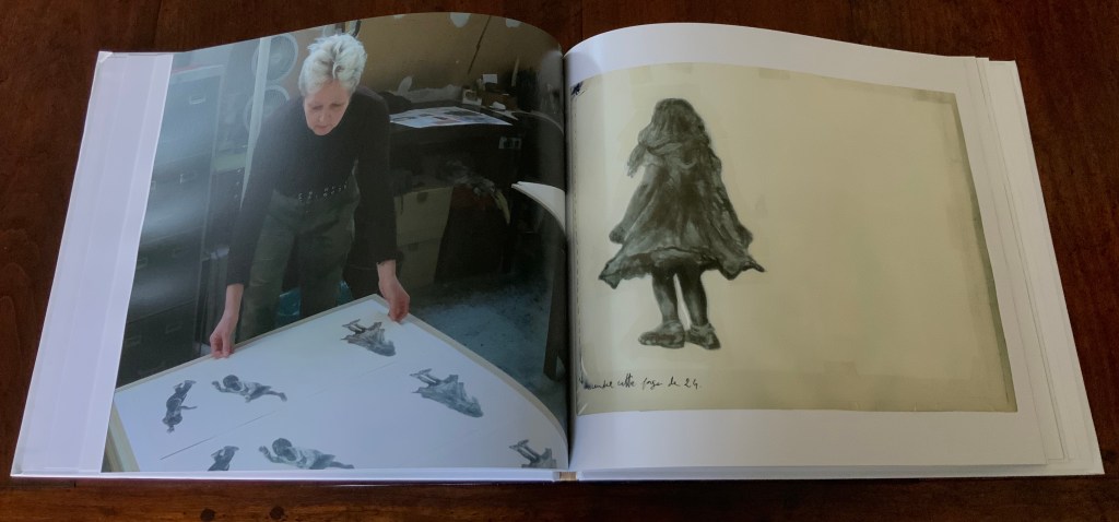 Artist’s statement (website): Another post-Trump election work, this is fully elegiac. Using the same I-am-an-algorithm technique that I used in Fabulas Feminae, I did compression writing for a series of weeks after the election. I drew on two corpora, the mainstream newspapers and Edward Gibbon’s The History of the Decline and Fall of the Roman Empire. Brad Freeman collaborated, creating the rich, dense, dark imagery on the pages through his techniques of offset overprinting.