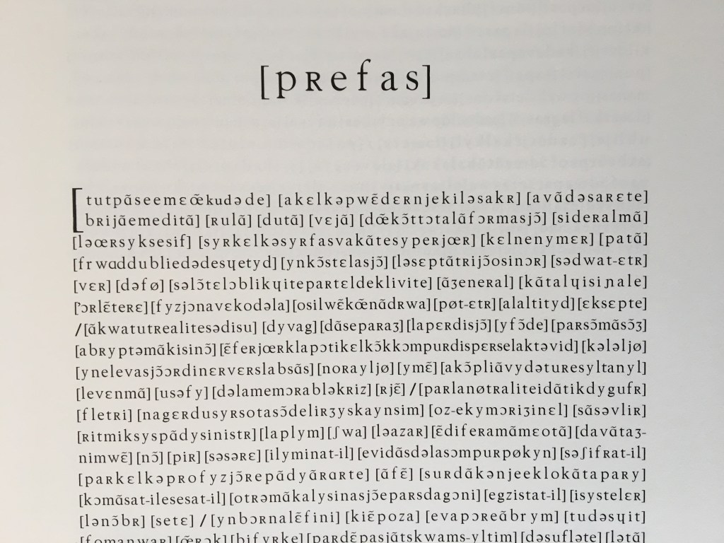 Bennequin returns the favour of Broodthaers’ transformative gestures at least twice over. Like Broodthaers’ opening block of text, Bennequin’s includes all the text of Mallarmé’s poem but renders it in phonetic symbols. Even the word Préface is replaced with [pRefas]. The square brackets in Bennequin’s block of text surround the verse units that Broodthaers went on to blot out. In further gestures of lèse-majesté to Broodthaers and Mallarmé, Bennequin adds his own explanatory “Note” in place of Mallarmé’s note, the one omitted by Broodthaers. Furthermore, signalling an inversion to come, Bennequin inverts the order of words in Broodthaers’ block of text. The last line of verse in Mallarmé’s poem and in Broodthaers’ block of text is “Toute Pensée émet un Coup de Dés” (All thought issues a throw of the dice). The first verse in Bennequin’s square of text is [tutpãseemɛœ̃kudəde].