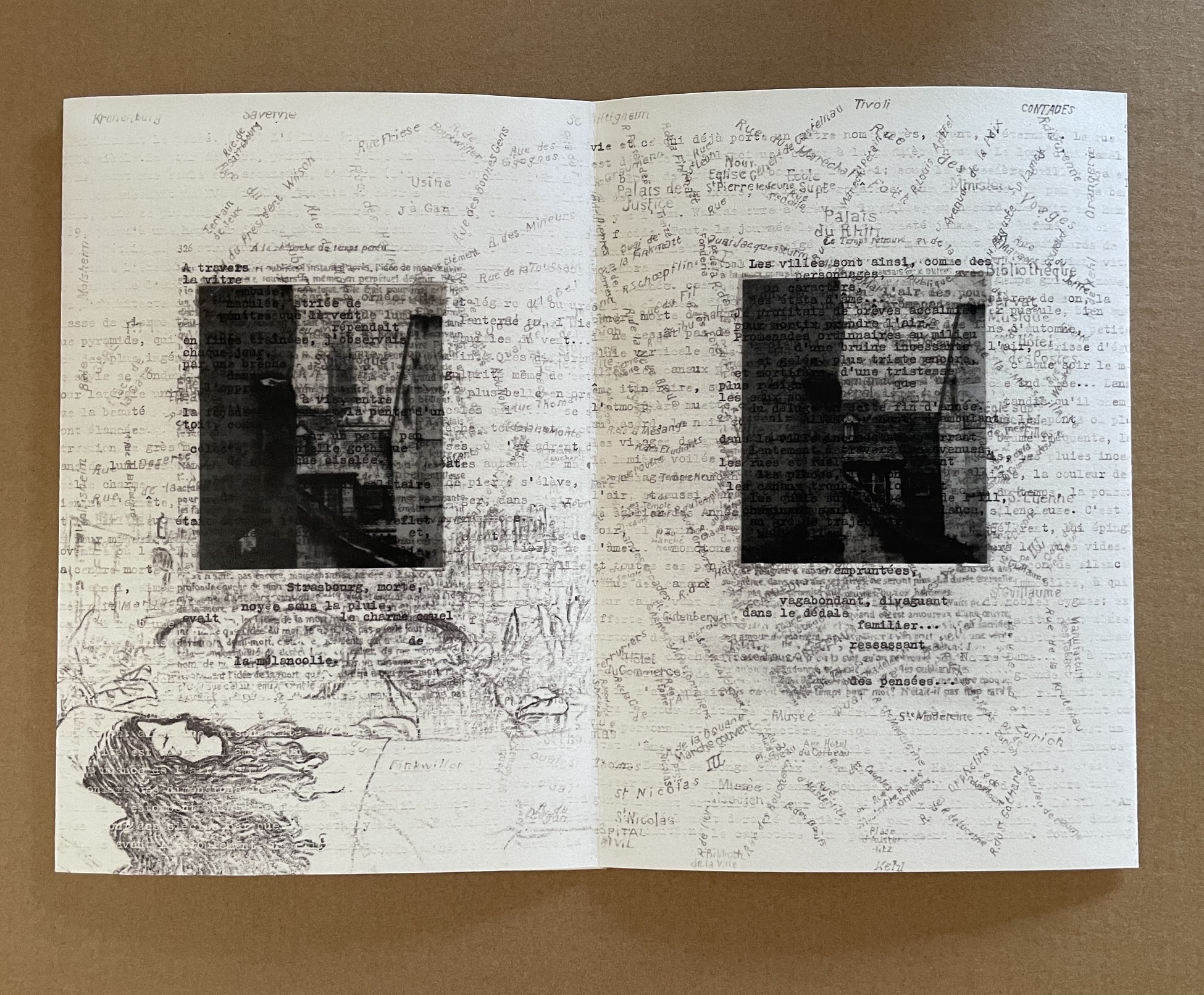 A bit more esoterically, the double-page spread suggests the quantity 2, an allusion to the result of thrown dice, their two faces up. It may also allude to the poem’s revolutionary versification, challenging French poetry’s Alexandrine, the traditional measure of 12 syllables usually divided into two hemistichs. It seem no accident that O’Toole has chosen a pattern of two-word titles for her booklets.