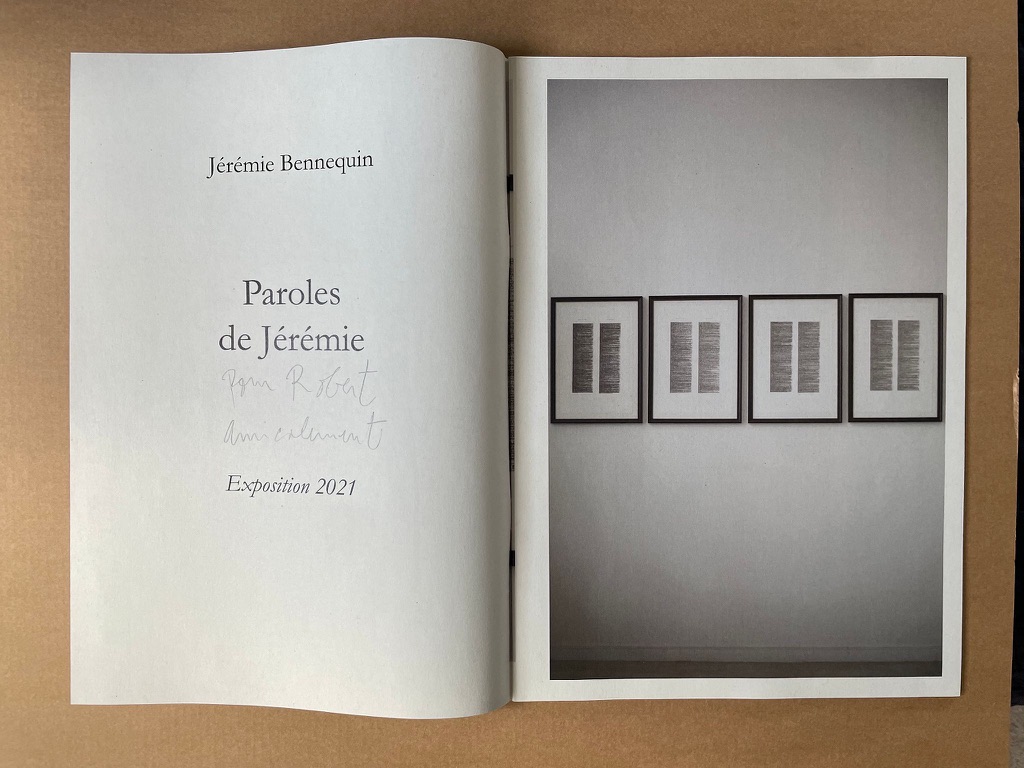 In a display case seemingly made for his particular work, the result of Bennequin’s long-distance performances of erasure with his colleague and publisher Antoine Lefebvre calls across the room to all the other works of chance and visible language.