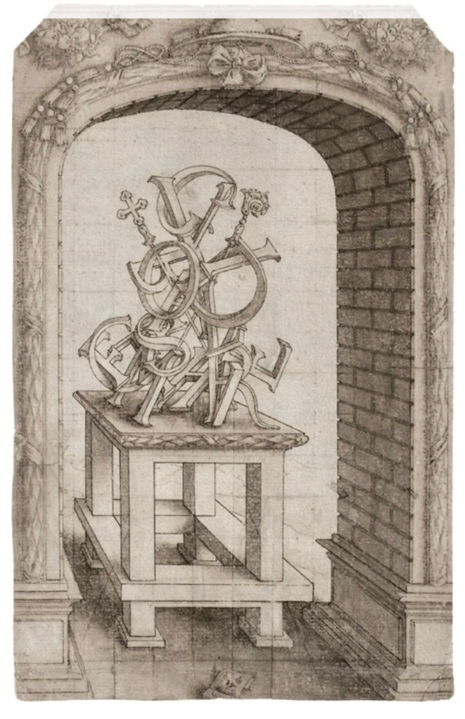Tory was not the first to propose an art and science behind the letterforms of the alphabet. Predating his efforts were Giovanninno de’ Grassi (1390-1405), Felice Feliciano (1463), the Anonymous Chicagoensis and Anonymous Monachensis (1468?), Damianus Moyllus (1480), Fra Luca Pacioli (1509), Sigismondo Fanti (1514), Francesco Torniello (1517), Ludovico Arrighi (1522), Albrecht Dürer (1525) and Giovanni Battista Verini (1527). Leading up to Champ Fleury, these earlier efforts track the development of humanism. Arguably, Tory’s effort is a capstone, combining myth, allegory, metaphysics, geometry, linguistics, calligraphy, typography and cryptography.