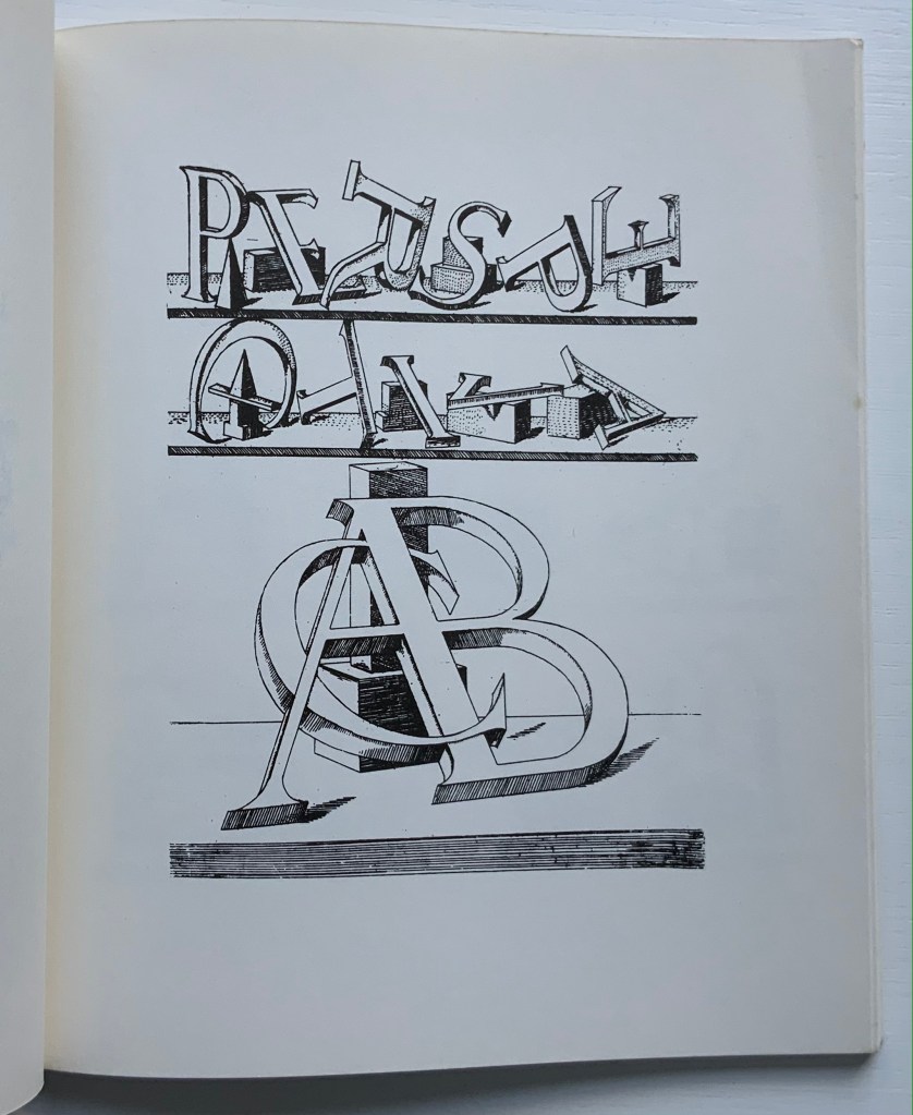 In his extended essay on Stéphane Mallarmé’s Un Coup de Dés Jamais N’Abolira le Hasard, Eric Zboya celebrates Ji Lee’s 3D typeface by rendering the entire poem in that face. The discovery of that essay led to the acquisition of Zboya’s artist book, which led to the acquisition of Ji Lee’s scarce volume Univers Revolved: A Three-Dimensional Alphabet (2004). Lee’s book resonates with several other works in the Books On Books Collection. Compare it, for example, with Johann David Steingruber’s alphabet book Architectonisches Alphabeth (1773/1973), Paul Noble’s alphabet book Nobson Newtown (1998) and Sammy Engramer’s three-dimensional rendition of Mallarmé’s poem.