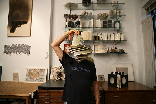 Theoretically and physically I ‘excavate’ the book, as a phenomenological endeavor, creating hypertexts, as if the text block itself is an archaeological site. When I appropriate books, their words are sometimes readable, their shapes are sometimes recognizable, but in every case they are transformed into objects that are visual and speak volumes.