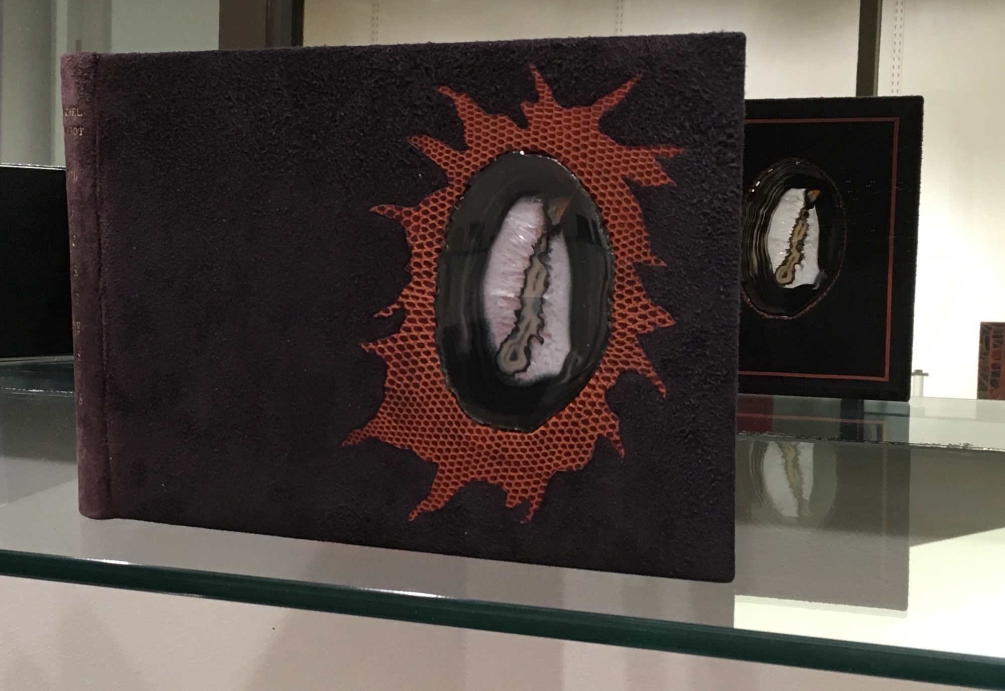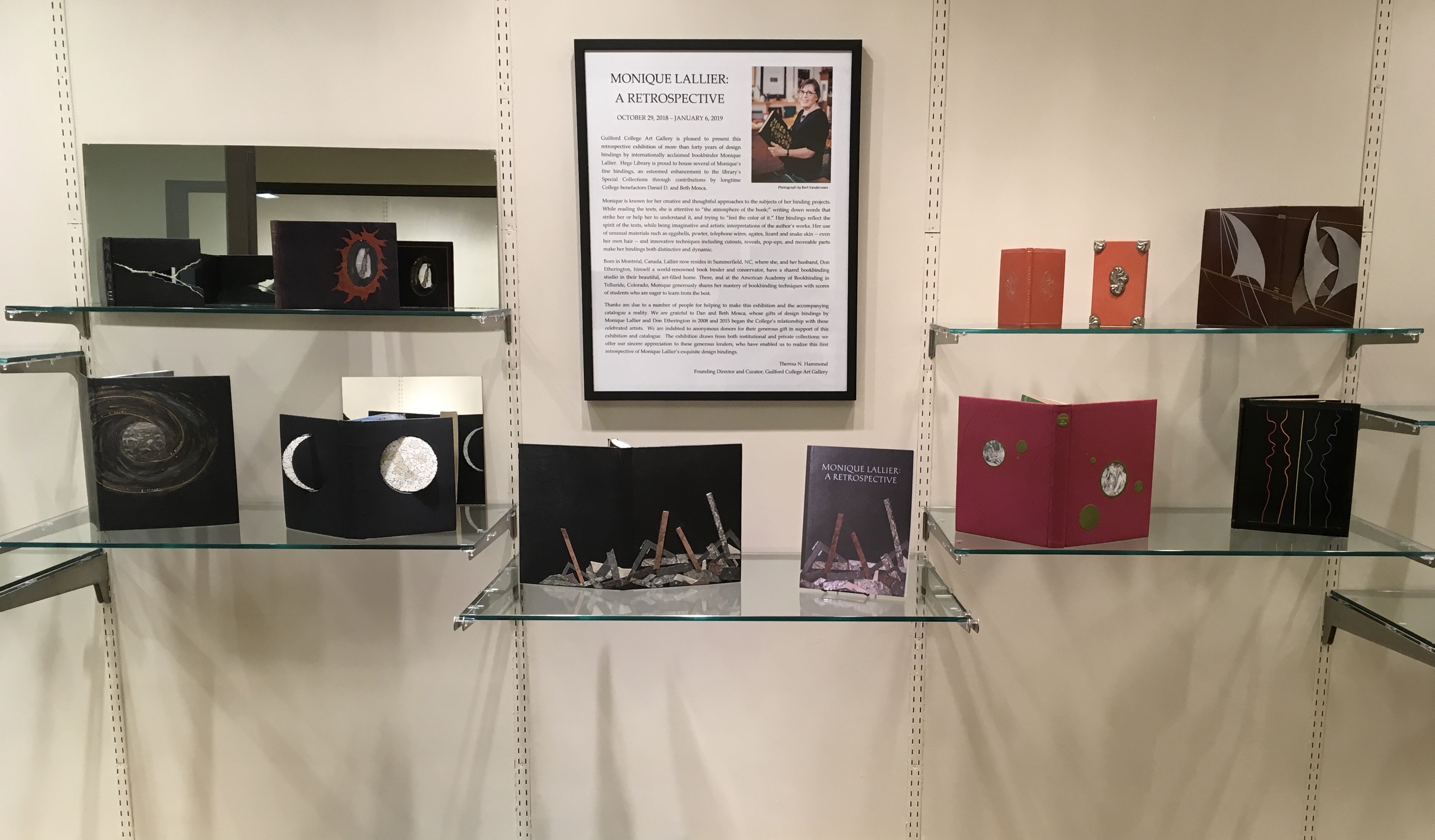North Carolina can be a quiet state of hidden gems. Particularly those of the book arts, book art and publishing variety. The art gallery fronting the library on the Quaker-founded Guilford College campus in Greensboro is one such gem. Within that gem for the next two months is another. The Gallery’s director and curator Theresa N. Hammond has marshaled its collection of Monique Lallier’s bindings and dozens of others from around the world for a retrospective on forty-six years of work by Lallier.
