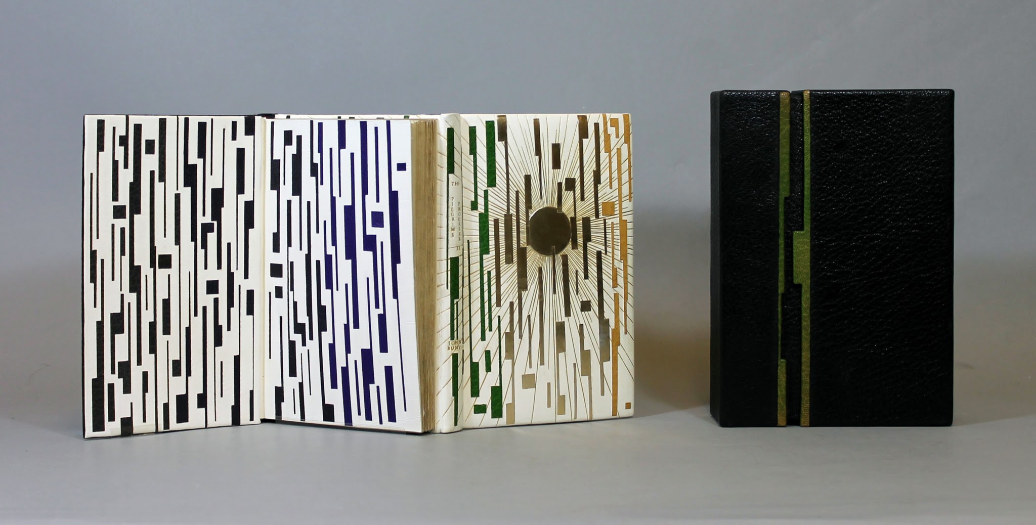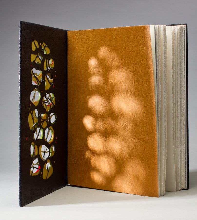 The structure and binding are the work of Amy Lapidow, who has taught bookbinding at the North Bennett Street School in Boston, MA. The airbrush coloring was executed by student Nancy Ames.