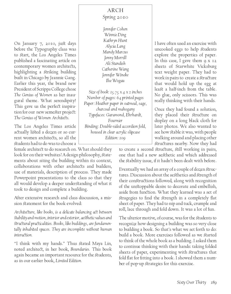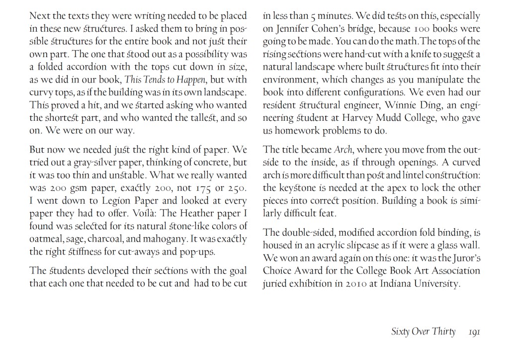 Created by ten students at Scripps College under the direction of Kitty Maryatt, Arch (2010) reminds us that the creation of a book — even a work of book art — is a collaborative effort.