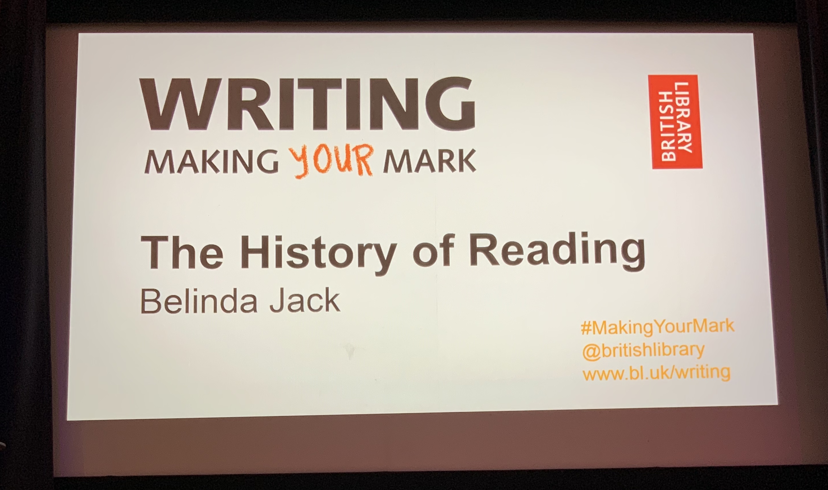 If, counting from the time of Lucy in the Olduvai Gorge, the 5000 years of writing and reading makes for only a tiny sliver of the anthropocene, the era of reading books represents so far a sliver of that sliver. Belinda Jack, a Fellow and Tutor at Christ Church, Oxford, talked for a brief hour about the history of the reading “half” of the equation. Jack’s Reading: A Very Short Introduction is built on the premise that, unlike the writing half with its artefacts of bone, rope, clay, bamboo, stone, paper and screens, this other half’s history proceeds only through indirect evidence of what we do with the written, by speculation about our reaction to it.