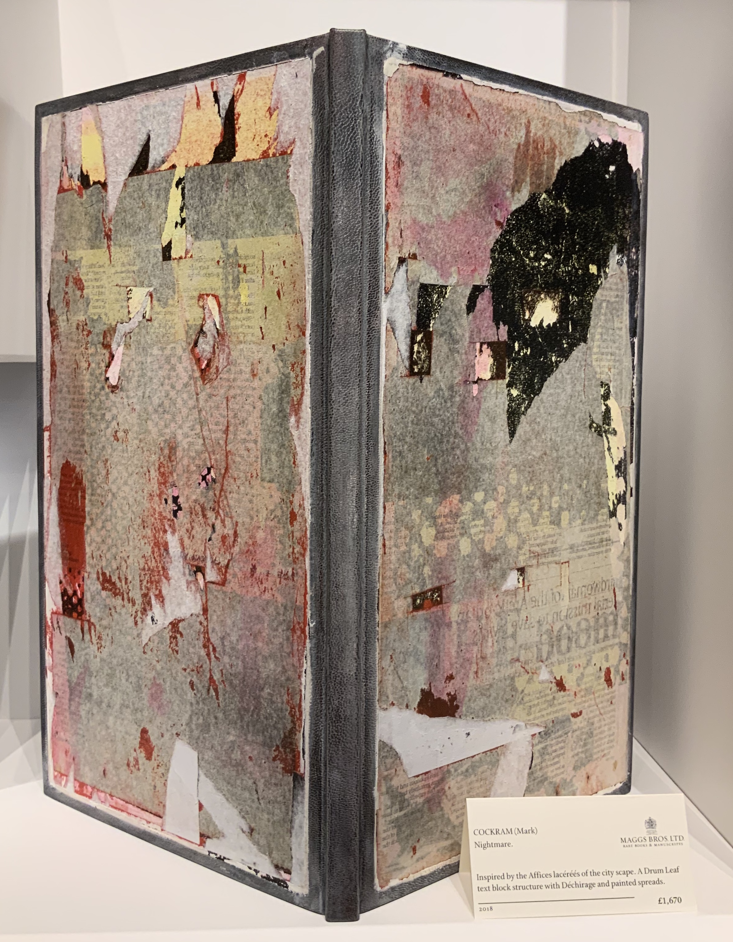 Although she did not mention making art in, with or from books, it was impossible not to think of the “glass free and photos allowed” exhibit of bookbinding and book art at Maggs Bros Ltd, Bedford Square, only 20 minutes’ walk from the BL.