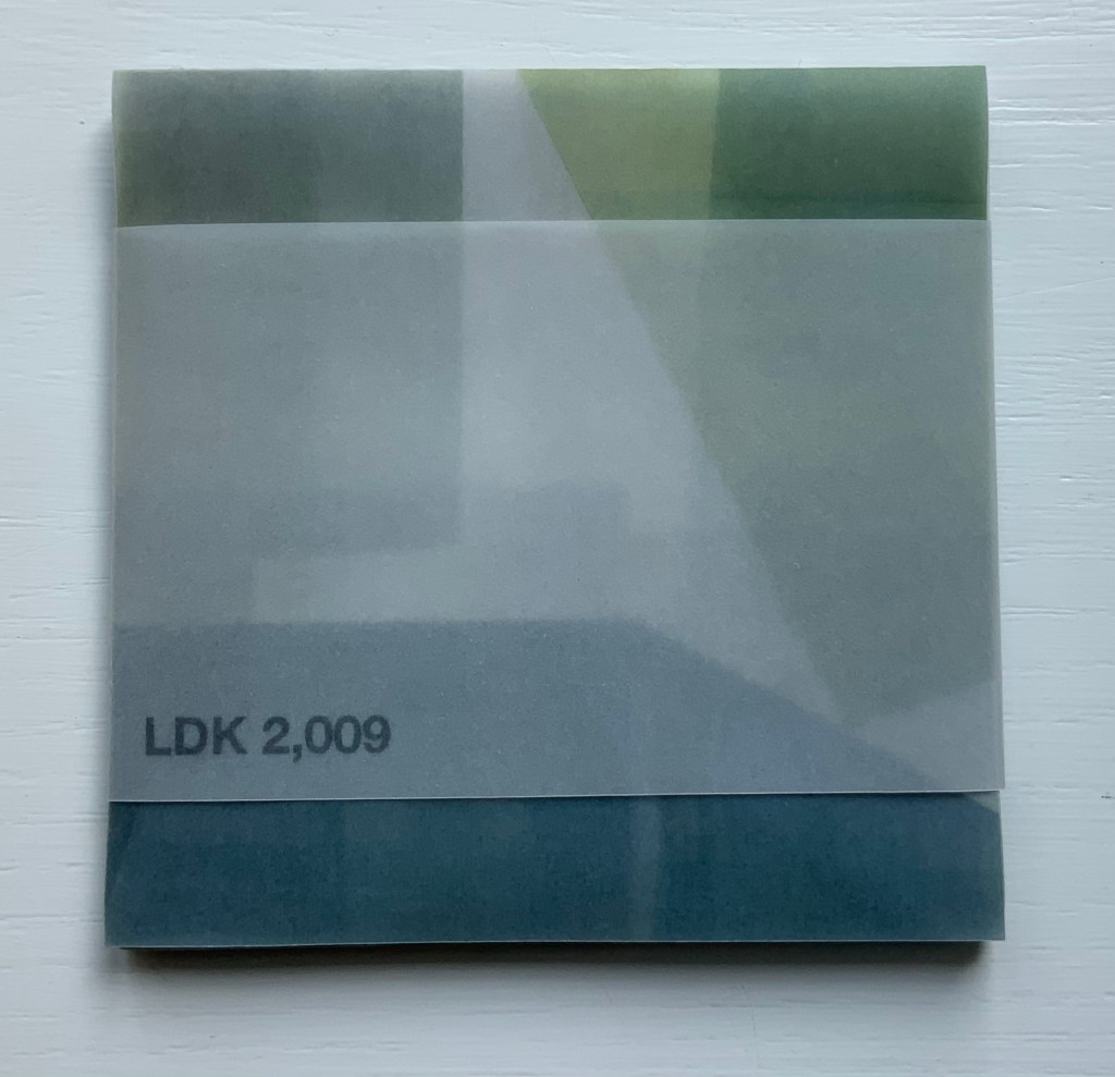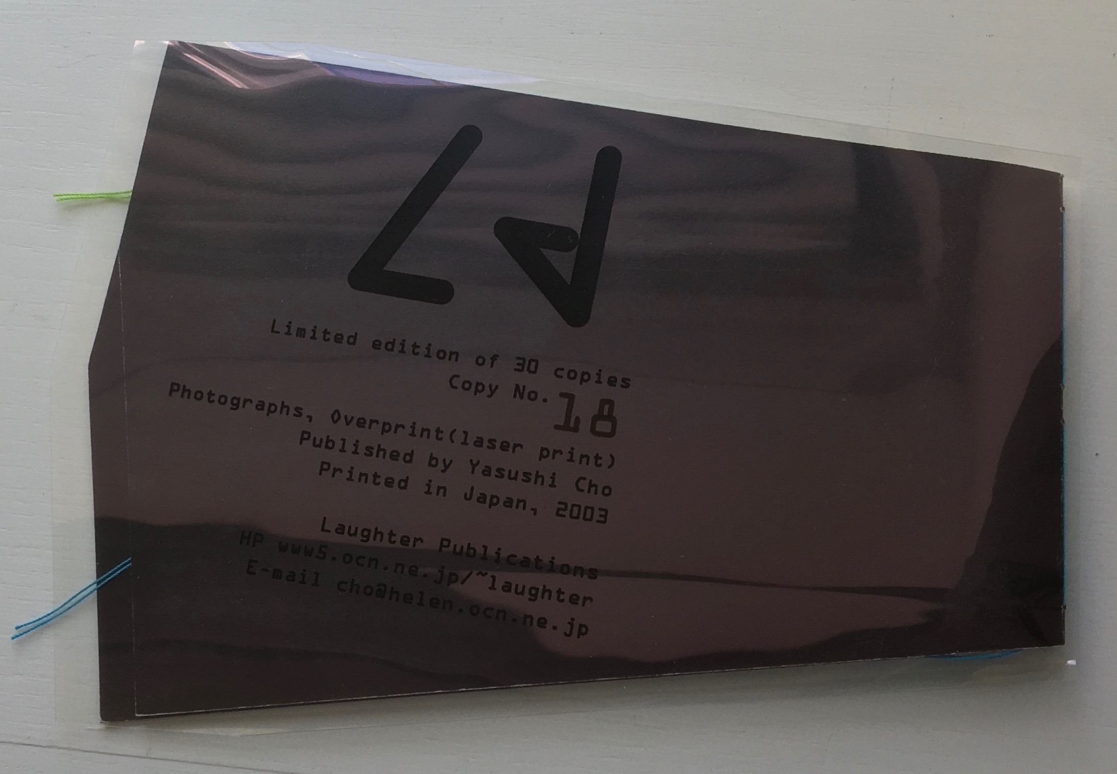 Ld (2003) Yasushi Cho Acetate sleeve. Booklet, handsewn. A5 nonstandard trim, 32 pages. Edition of 30, of which this is #18. Acquired from the artist, 10 April 2021. Photos of the work: Books On Books Collection.